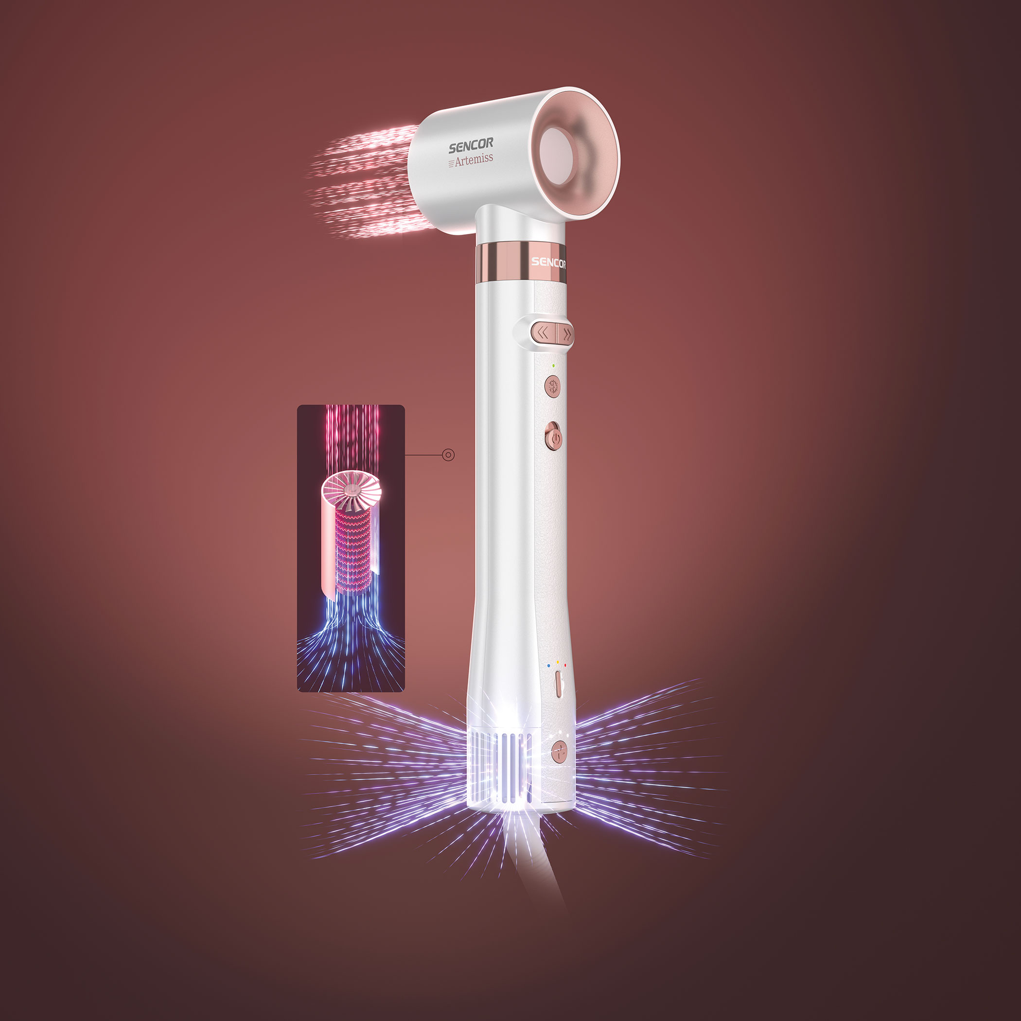 Introducing revolutionary technology for your comfort. This motor has a much longer lifespan and is significantly quieter than older motor types. With incredible power, thanks to speeds of up to 110,000 RPM, it can create an airflow of up to 75 km/h.