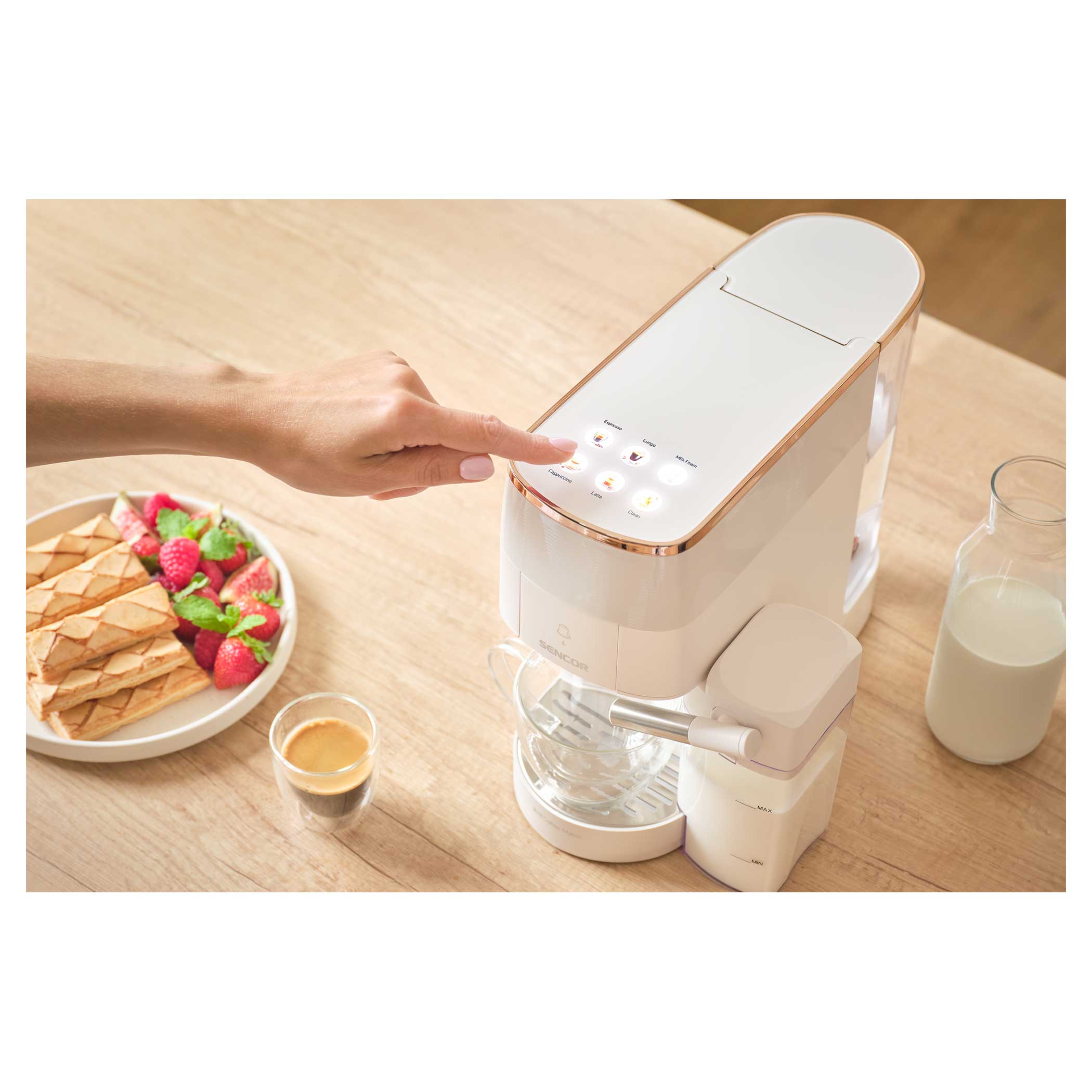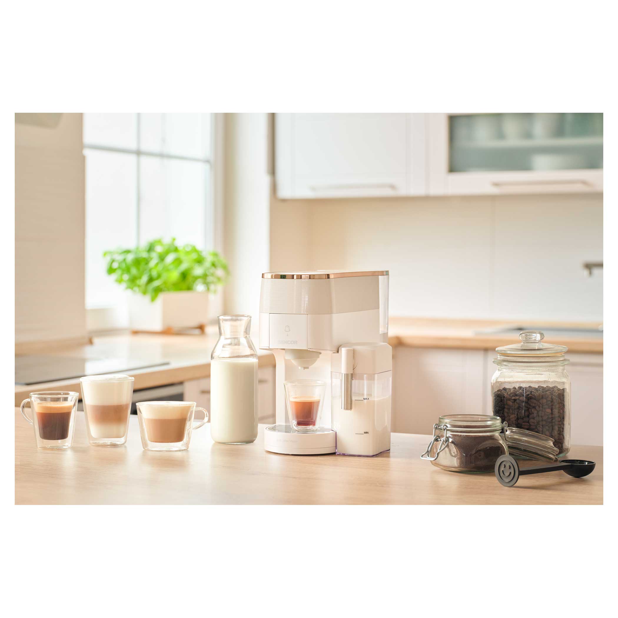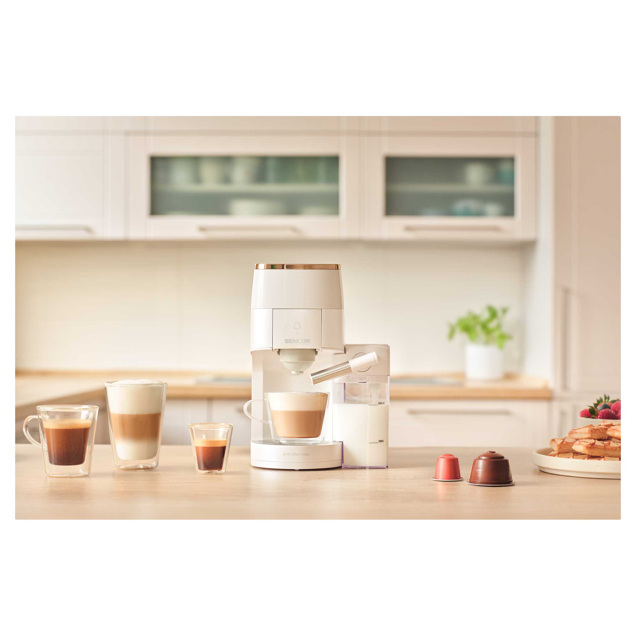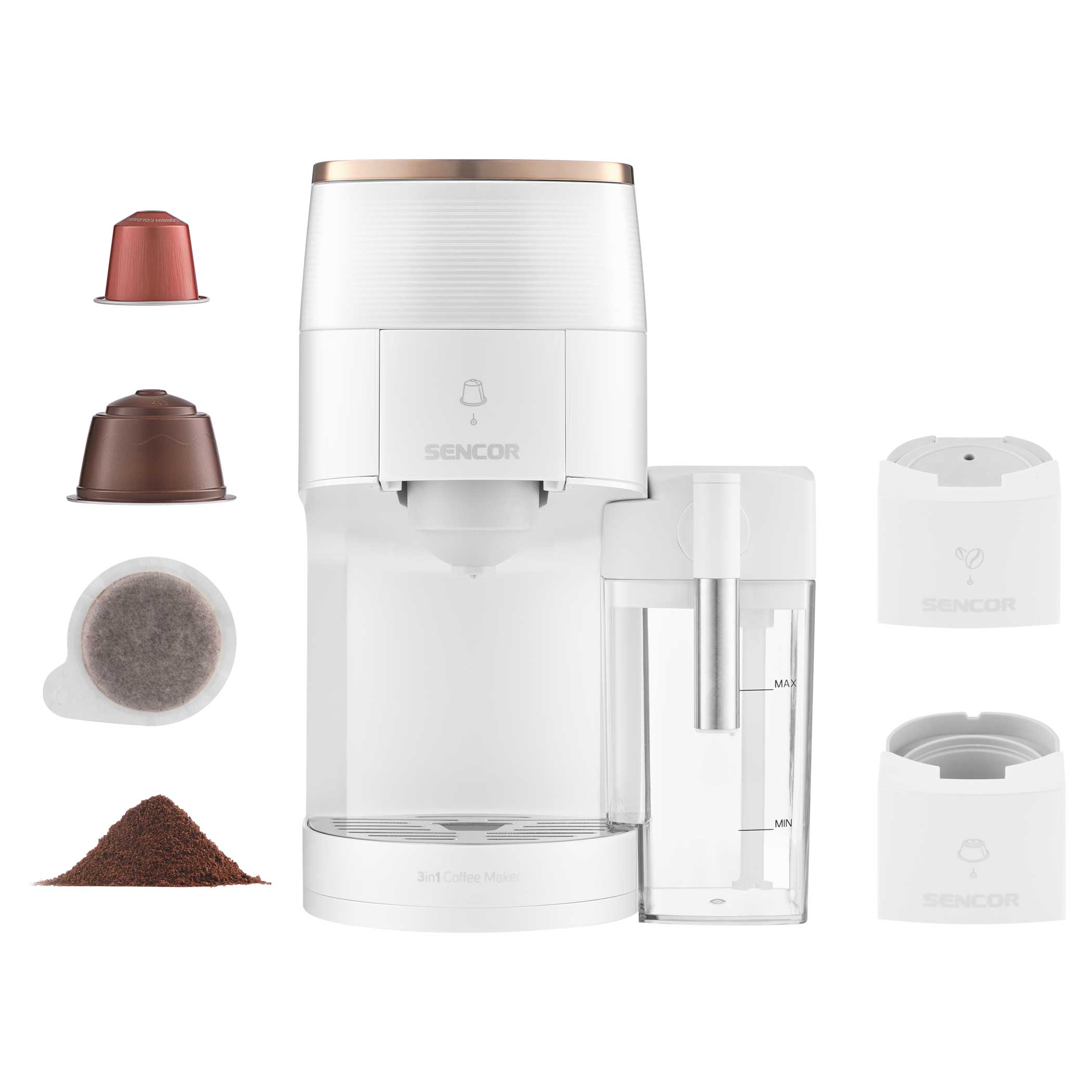 Discover the endless possibilities in coffee preparation with the Sencor SCC 3000BK multi- capsule Espresso machine, which will prepare delicious coffee easily, quickly and with high quality. Choose from a wide range of Nespresso® Original*, Nescafé® Dolce Gusto®* or any brand of ground beans, depending on your preference. The colour display makes it easy to choose your favourite beverage with just one touch. Professional quality is backed by a powerful 19 bar pump and Thermoblock water heating system. The coffee machine is equipped with a milk tank for automatic milk frothing and easy cleaning with automatic flushing. Because of its compact size, you can also get it for smaller apartments.