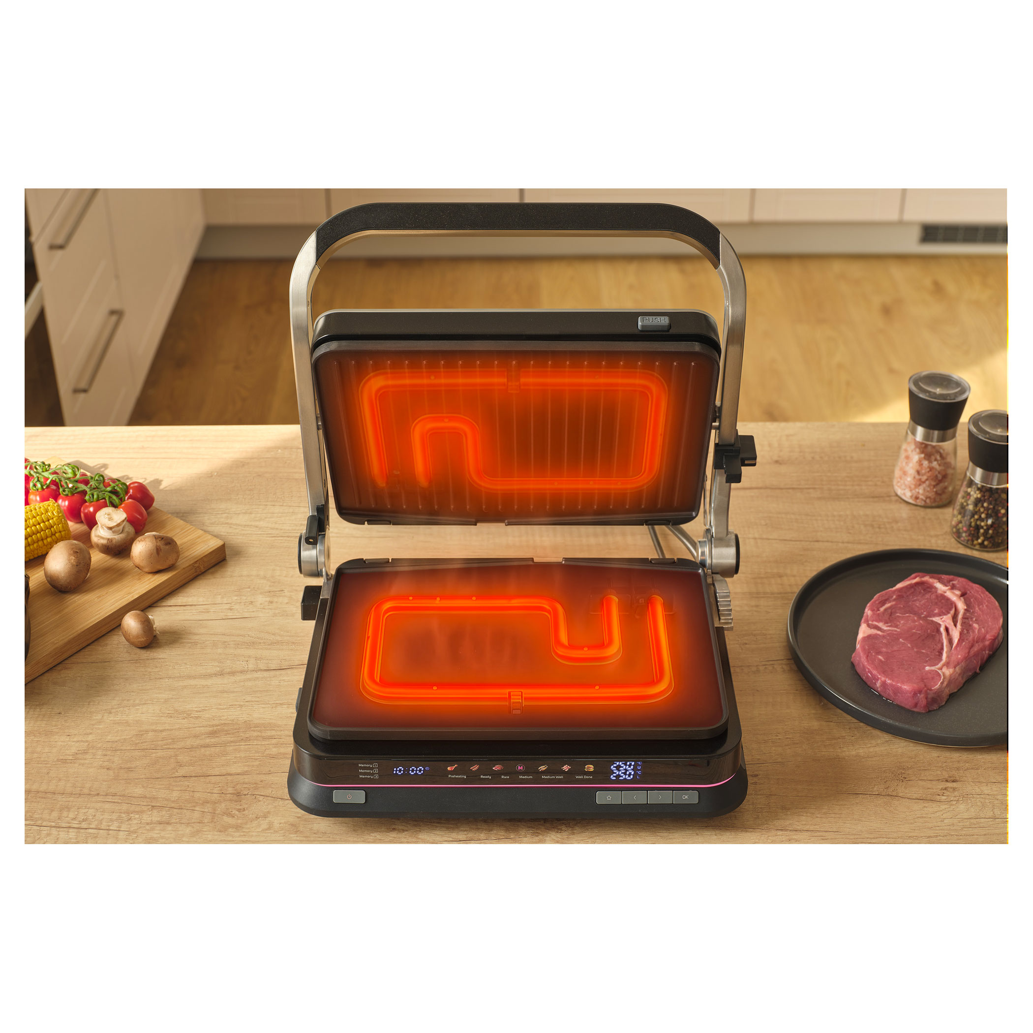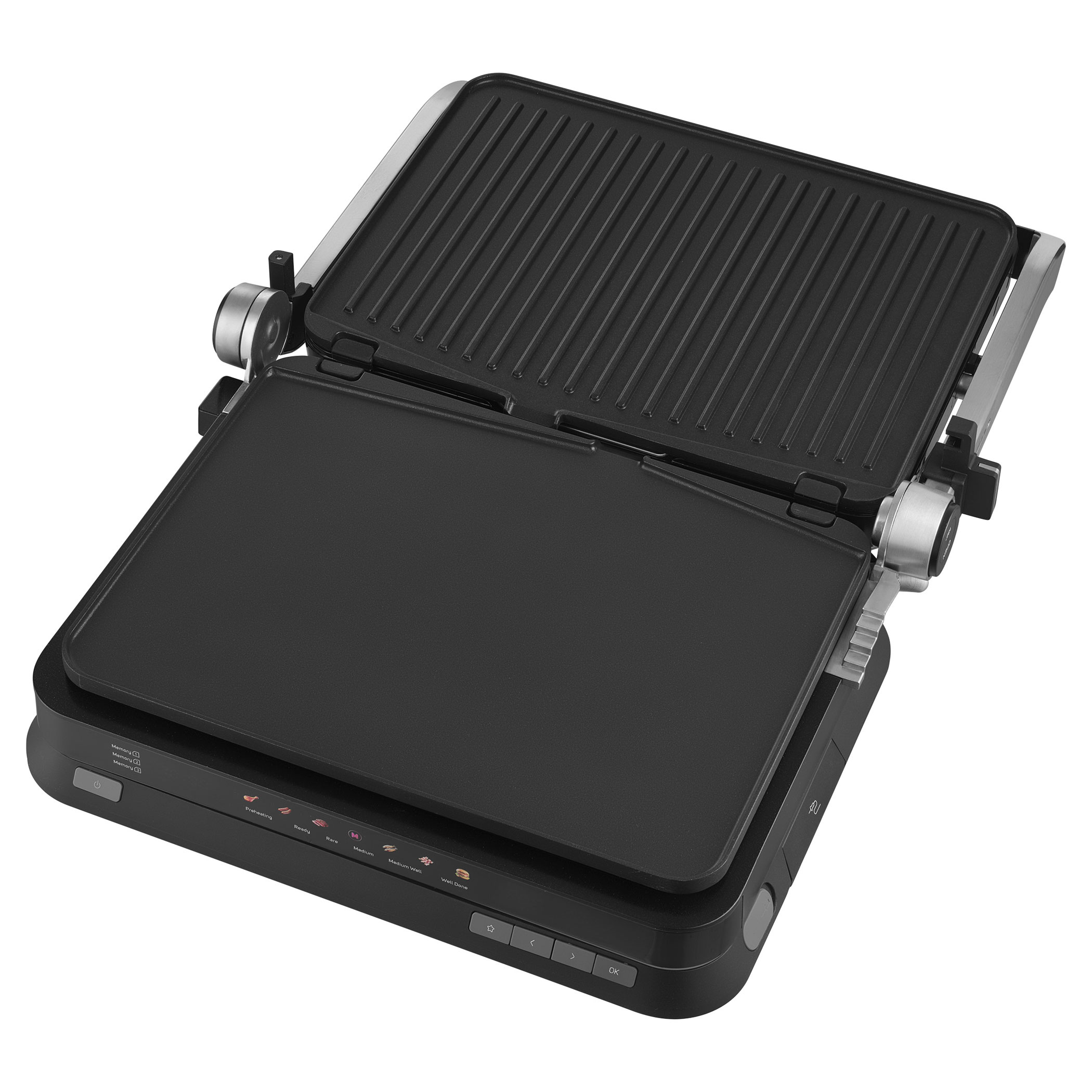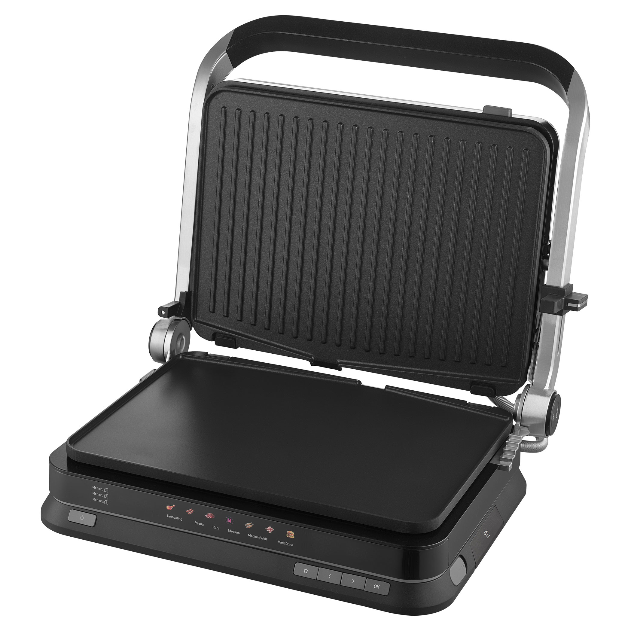 - removable grill plates – ribbed top and flat bottom