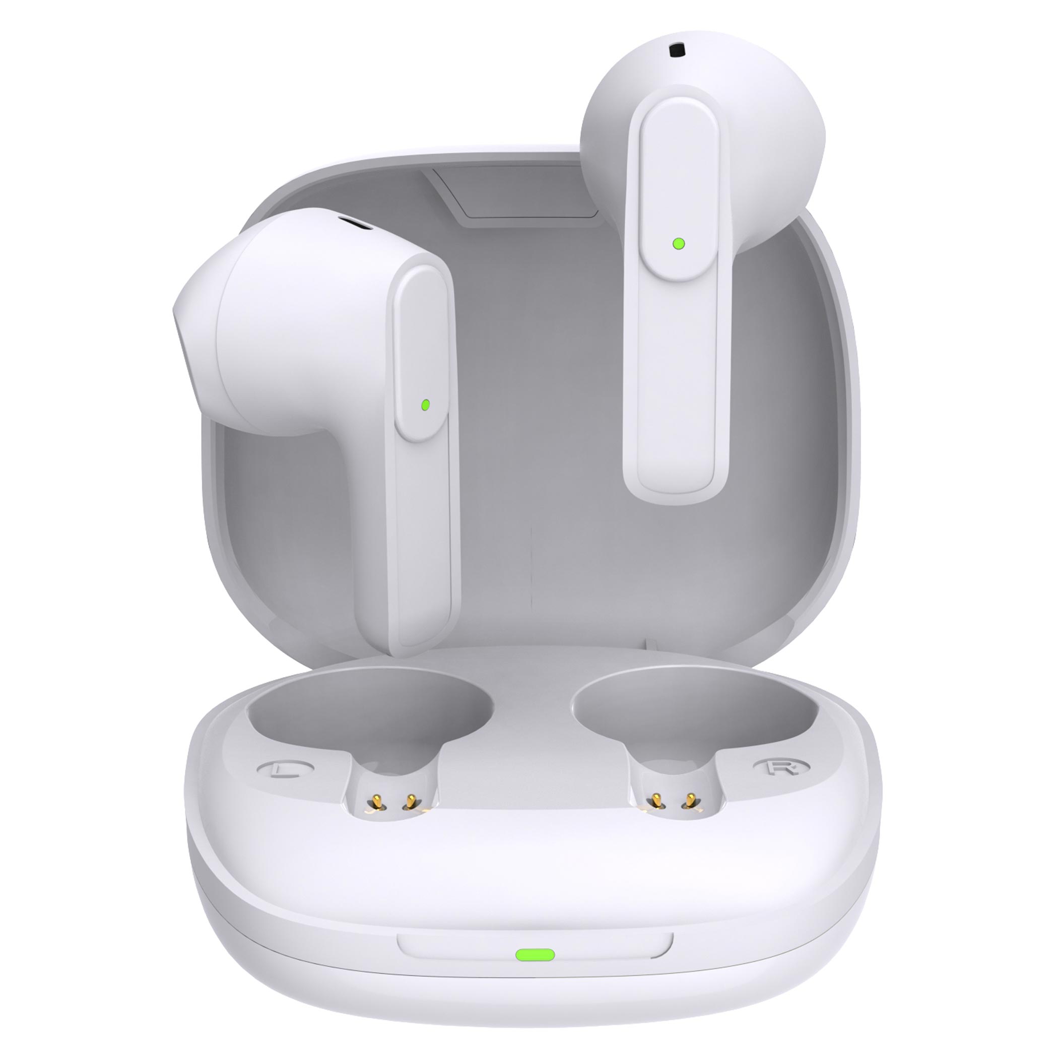Compact charging case with 230 mAh battery capacity can charge the earphones up to 3 times to 100%. The universal input port for the charging case is equipped with a USB C connector.