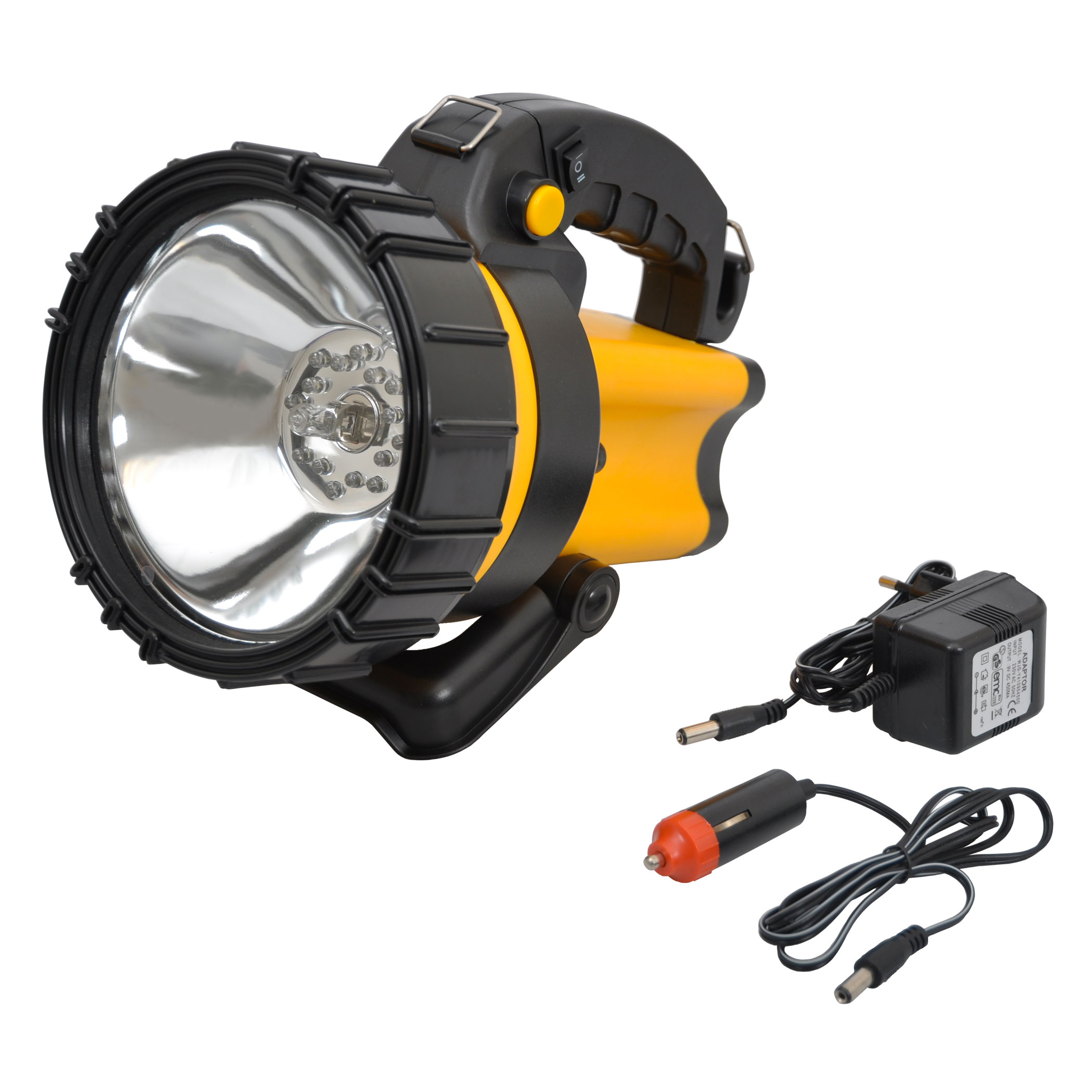 Quality rechargeable hobby flashlight. Combination of a powerful halogen, economical 16 LED (5 mm) and red warning ligh on the rear side makes this flashlight into a practical partner in any situation.