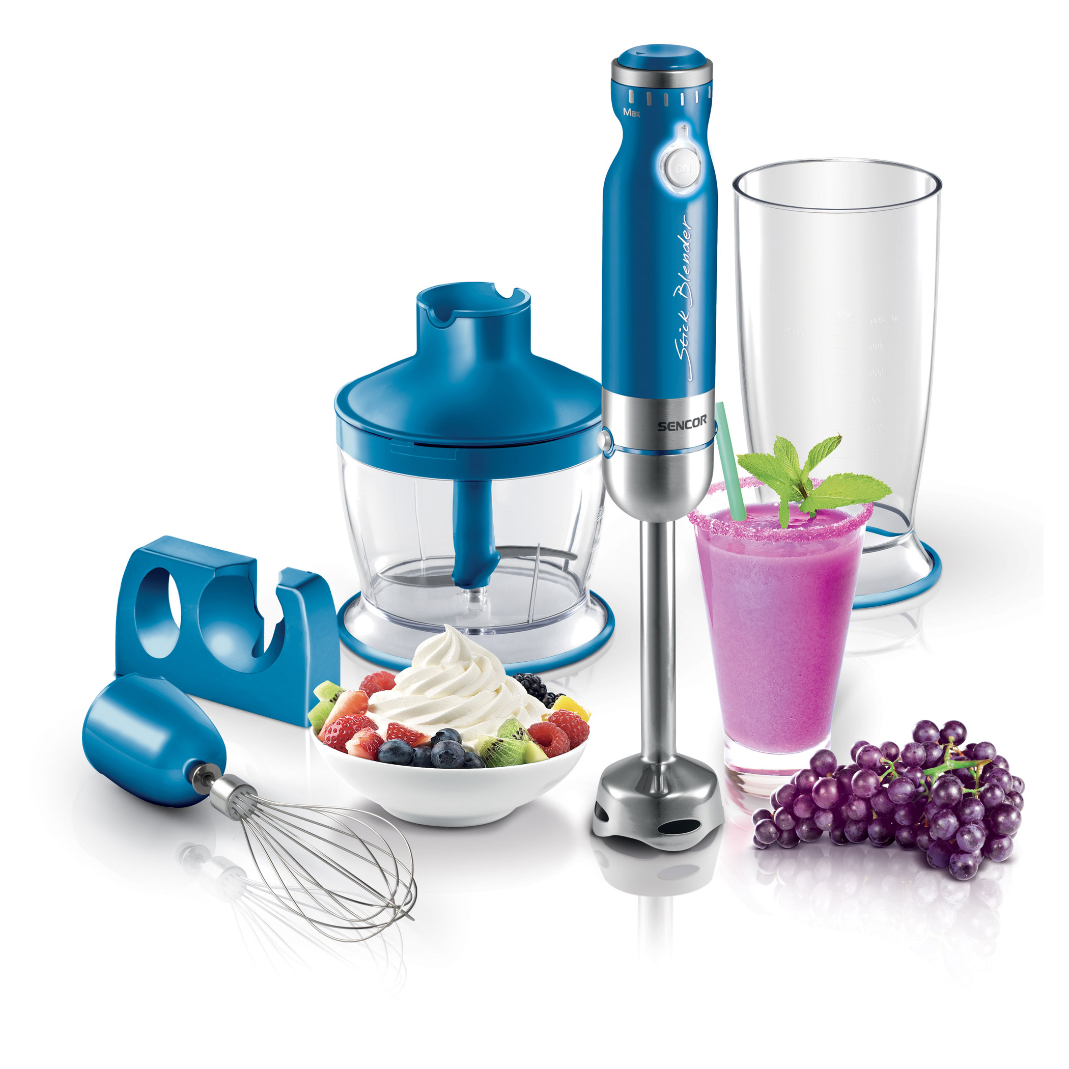 - 500 ml chopper with a stainless steel blade and a lid