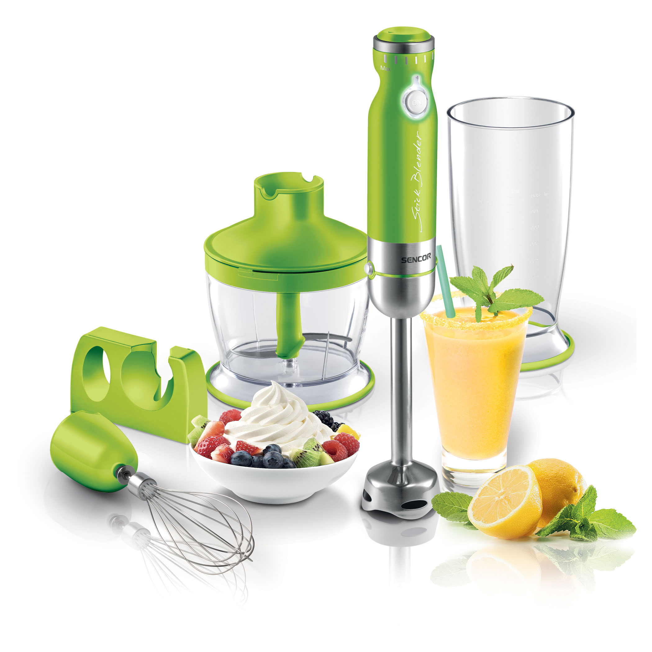 - 500 ml chopper with a stainless steel blade and a lid