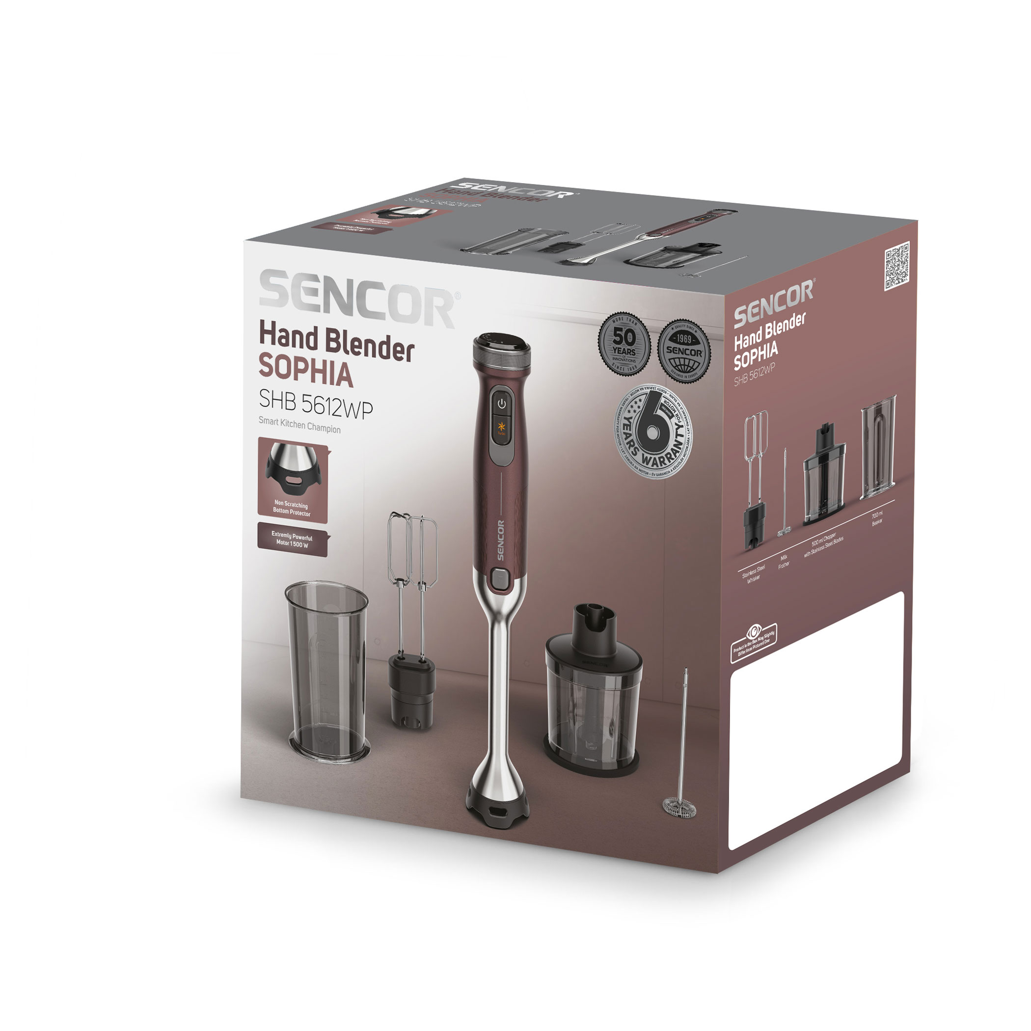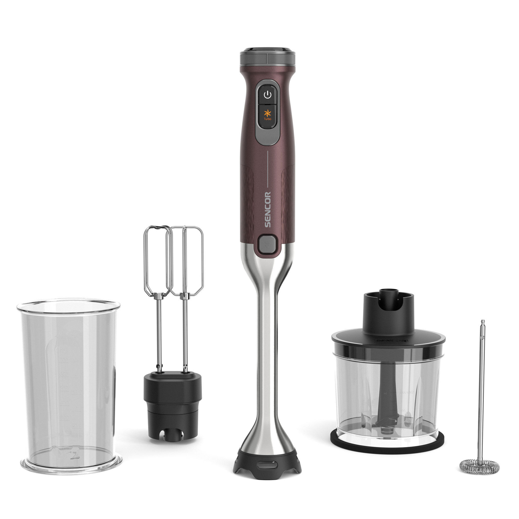 - 4 functions in one: blending, chopping, whisking and milk frothing