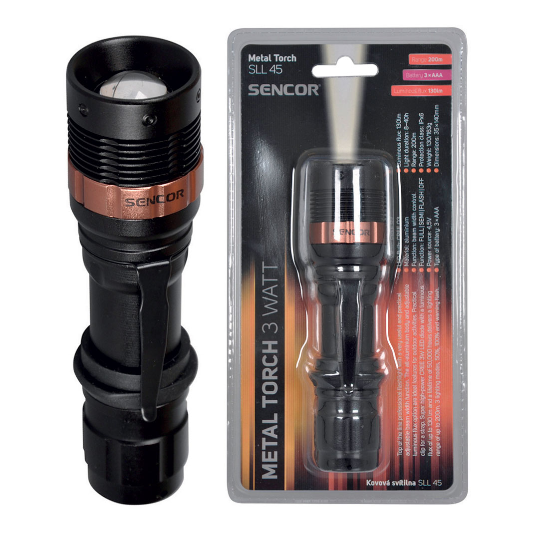 Super high-power CREE 3W LED diode with a luminous flux of up to 130 lm and a lifetime of 50,000 hours delivers a lighting range of up to 200m