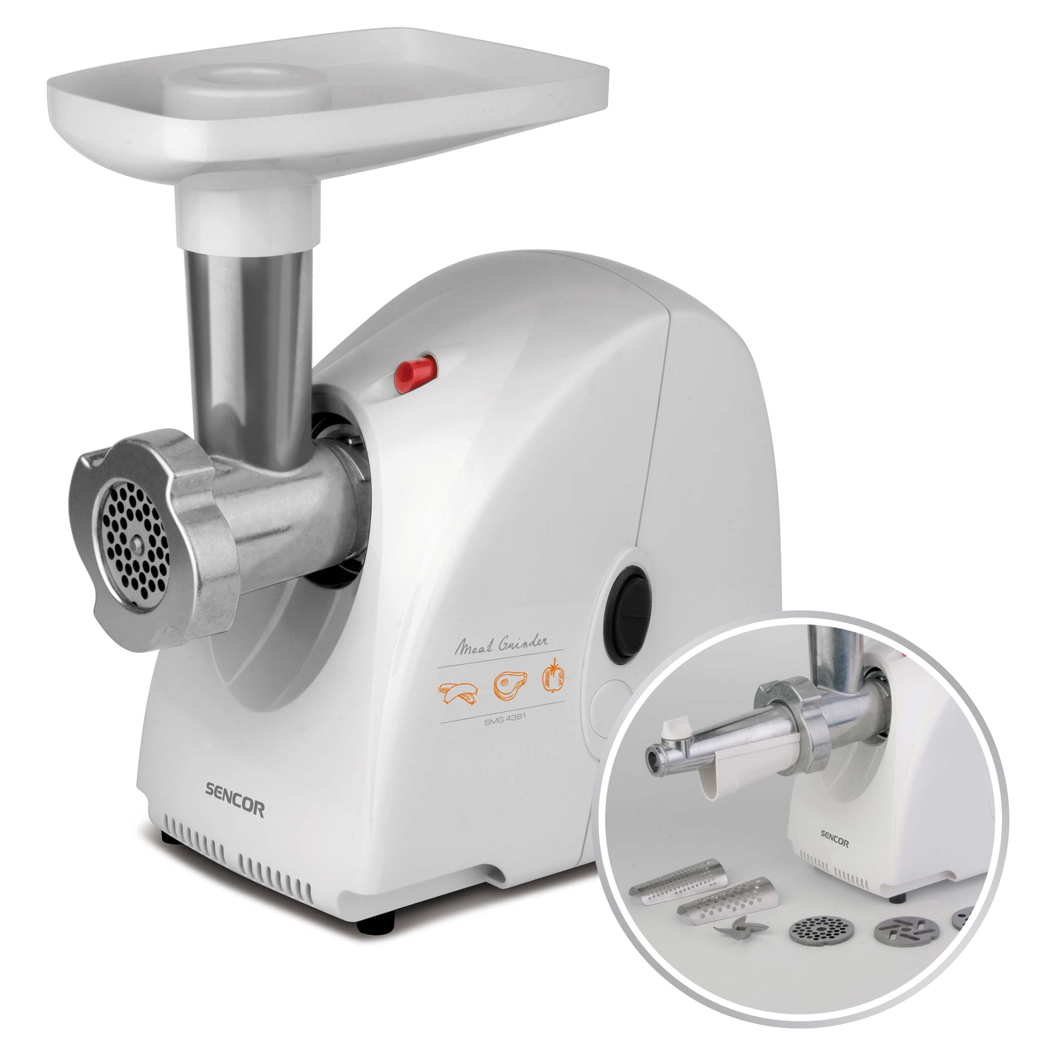 SENCOR used here top quality materials like stainless steel blades and durable powerful motor. And there are more functions thanks to accessories for juicing soft fruits into a healthy fresh juice and producing sausages from different types of meat and spices.