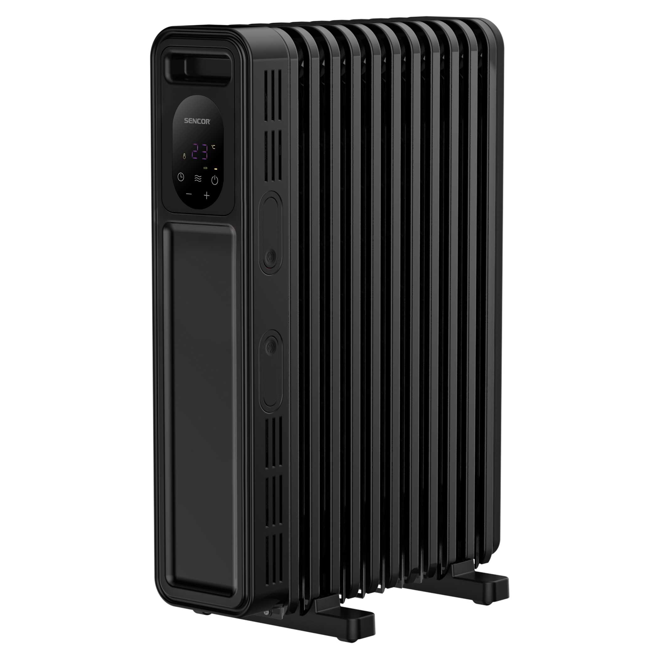 At the cottage, in the office, in the workshop or in the bedroom – wherever you need to heat up or warm up, you will appreciate the noiseless operation, the fast start-up of the heating power and the high accumulation capability of SENCOR digital oil radiators with FLAT SHAPE heating elements. The digital control panel allows convenient setting of the target temperature in the range of 5 to 35 °C. A remote control is also at hand. Digital oilers are available in black or white in two versions, with either 11 or 13 heating fins.