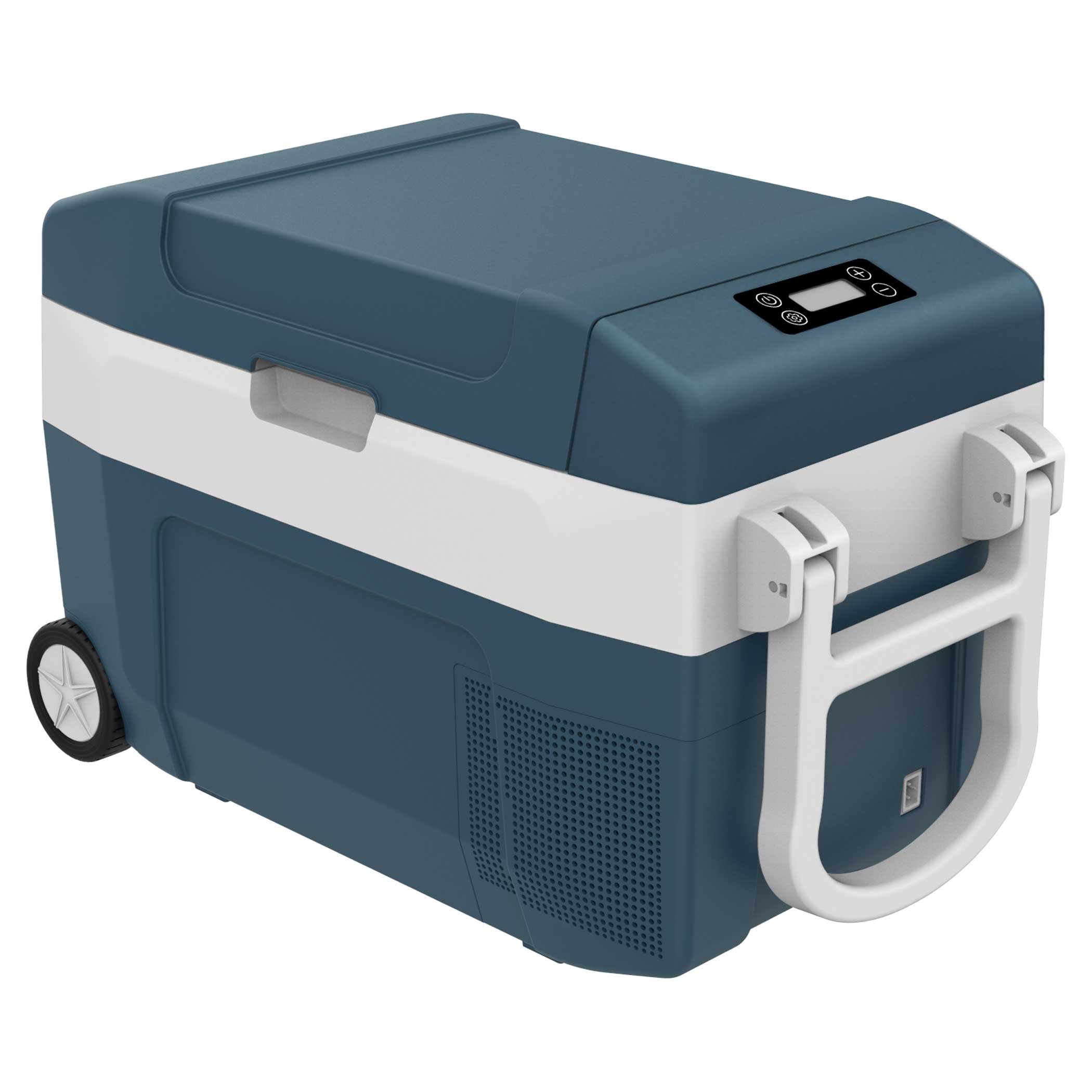 35 l powerful compressor car cooler that cools, freezes and heats. For outdoor parties, on the road, away from civilisation... there are plenty of situations where you need to transport drinks and food while keeping them at the right temperature.And this big compressor car cooler can hold a lot of goodies. It offers two separate chambers under one lid. A larger, 27 litre freezer and a smaller, 8 litre chiller. Thanks to a powerful compressor for cooling and effective insulation, it can cool its interior to temperatures ranging from 20 to -18 °C, depending on the exact setting you choose. So even frozen food can be transported safely.