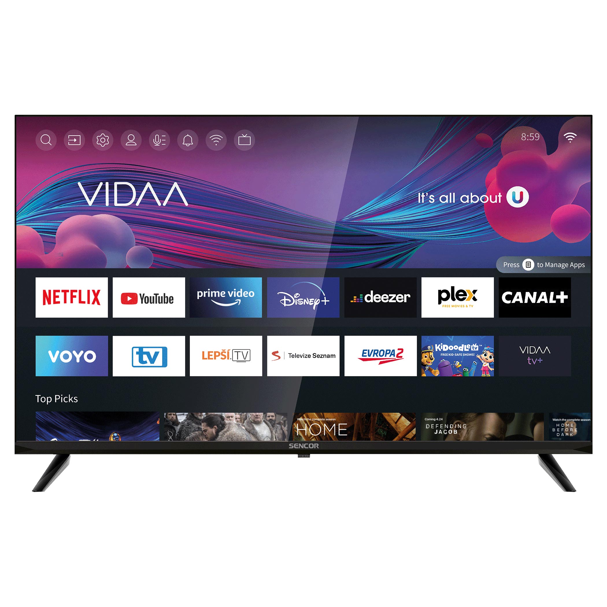 In SENCOR TVs with the VIDAA operating system do not miss the global applications NETFLIX, DISNEY+, YOUTUBE, AMAZON PRIME.Screen mirroring