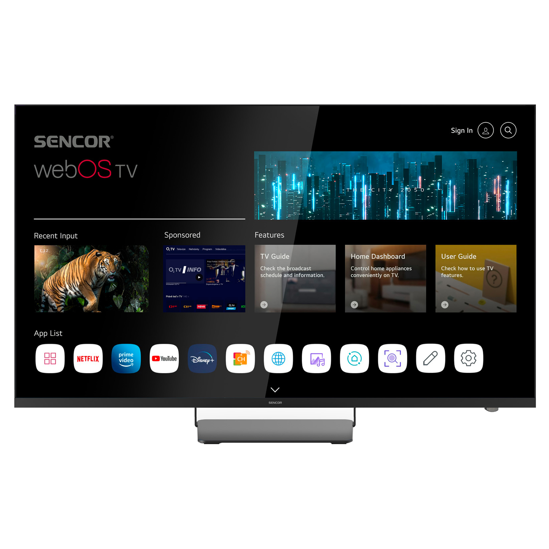 The new lineup of SENCOR TVs runs on the webOS operating system, which is powered by a quad-core ARM Cortex processor. This popular operating system comes from the workshop of the Korean company LG and is proven by the many years of experience of millions of users around the world. It is very user-friendly, fast and control is intuitive. The main advantage for users is a selection from large number of applications. Of course, there is access to Netflix movie content, Amazon Prime video Skylink live TV and to popular IPTV services.Design and comfort with the Magic Control