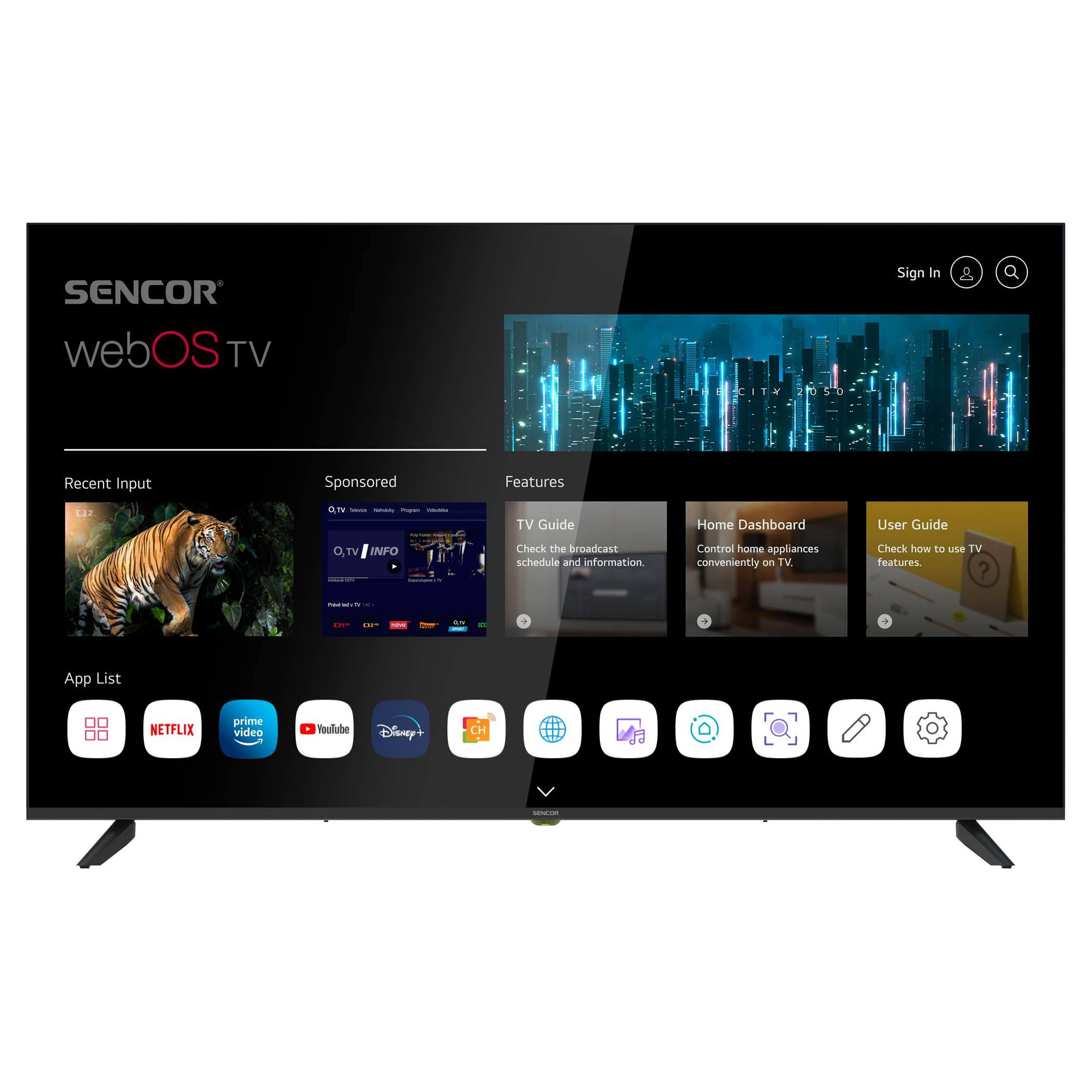The new lineup of SENCOR TVs runs on the webOS operating system, which is powered by a quad-core ARM Cortex processor. This popular operating system comes from the workshop of the Korean company LG and is proven by the many years of experience of millions of users around the world. It is very user-friendly, fast and control is intuitive. The main advantage for users is a selection from large number of applications. Of course, there is access to Netflix movie content, Amazon Prime video Skylink live TV and to popular IPTV services.Design and comfort with the Magic Control
