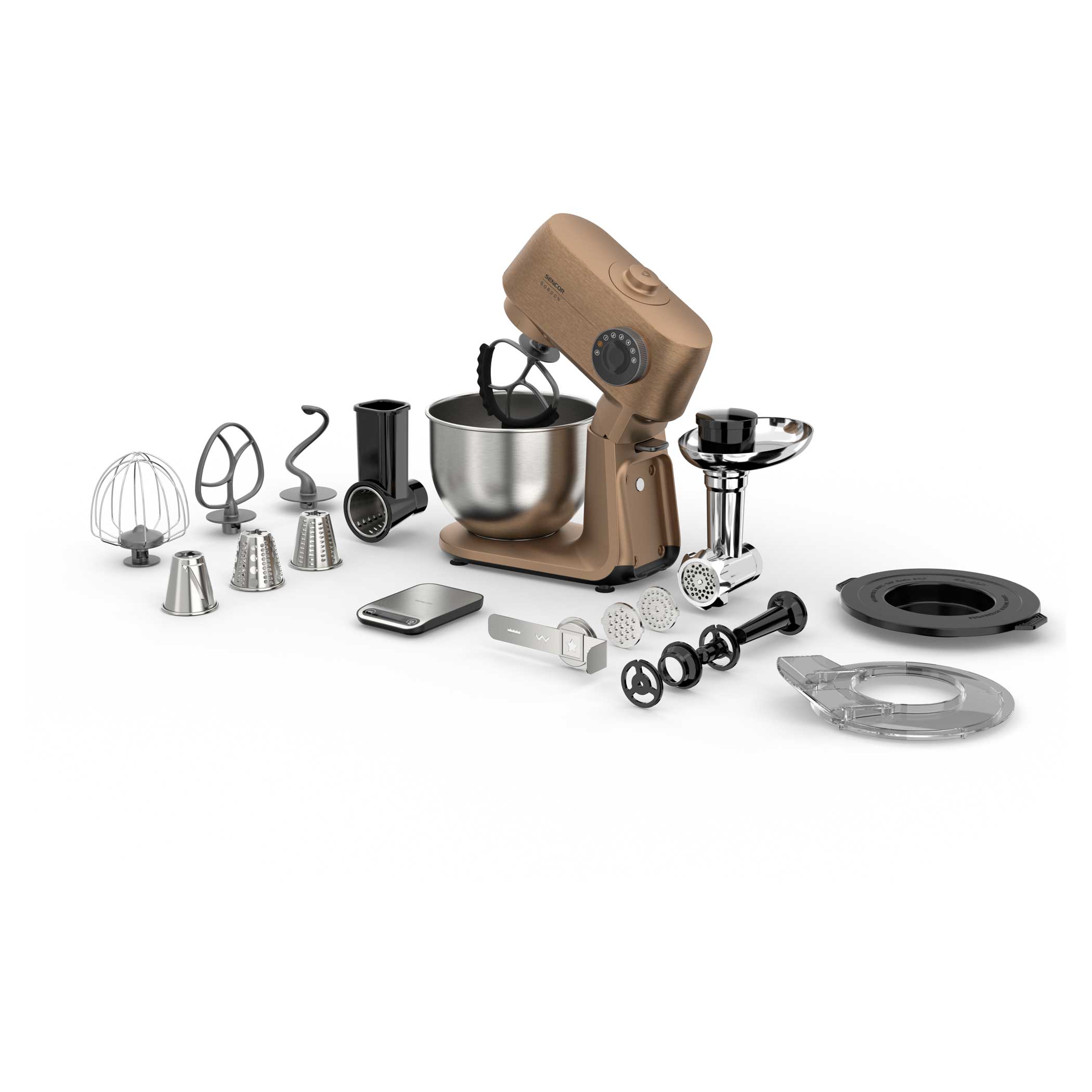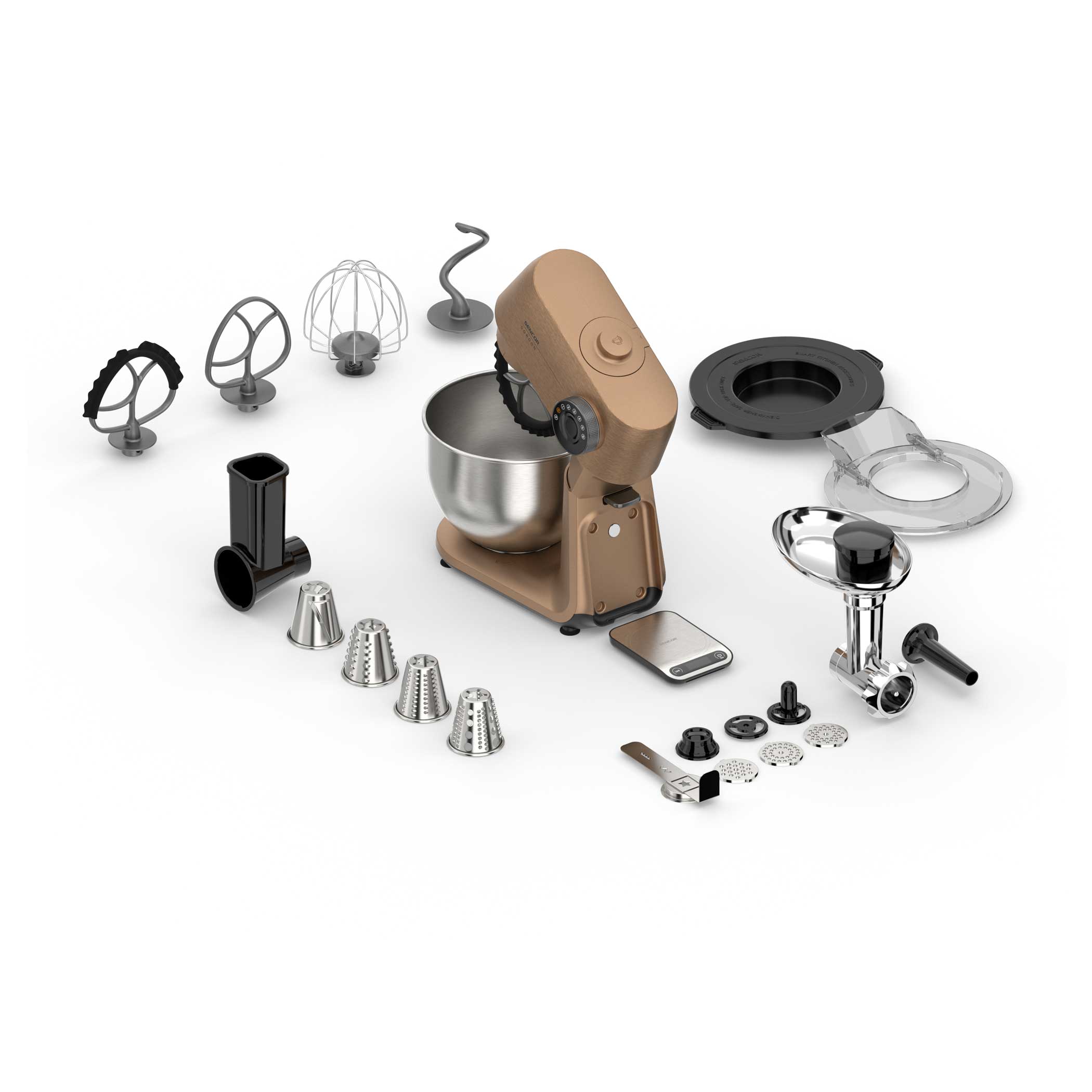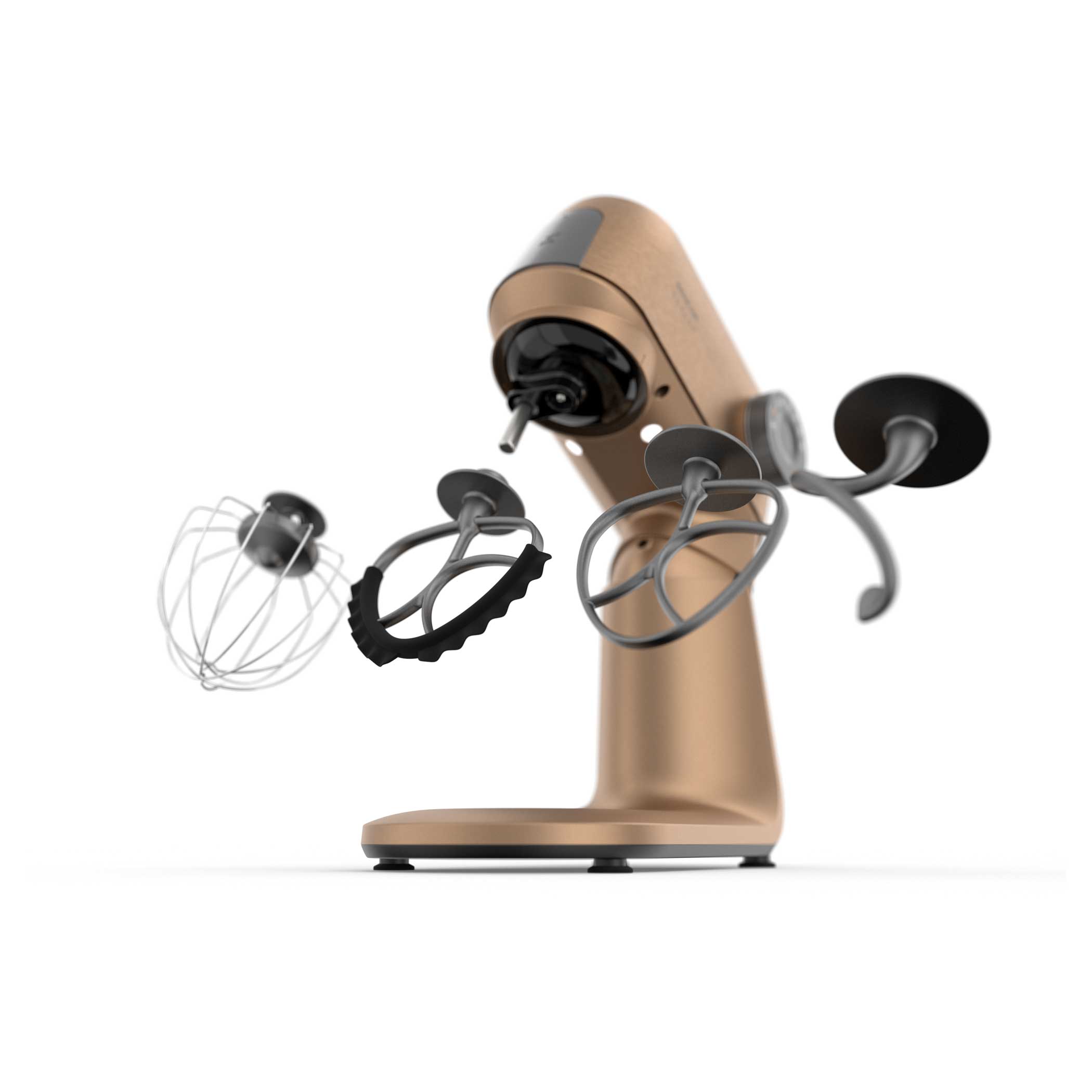 • Four metal attachments with non-stick coating for kneading, beating and light doughs