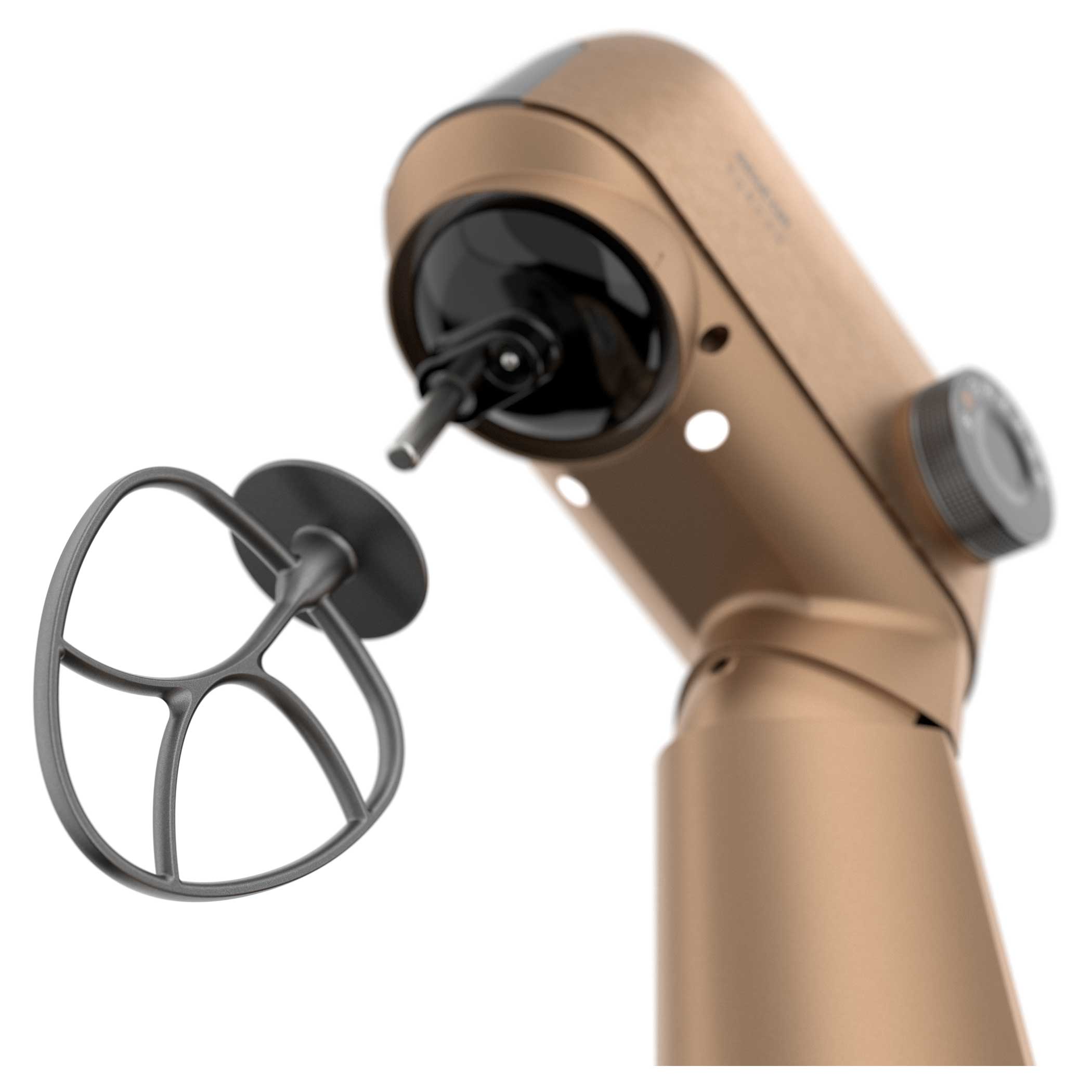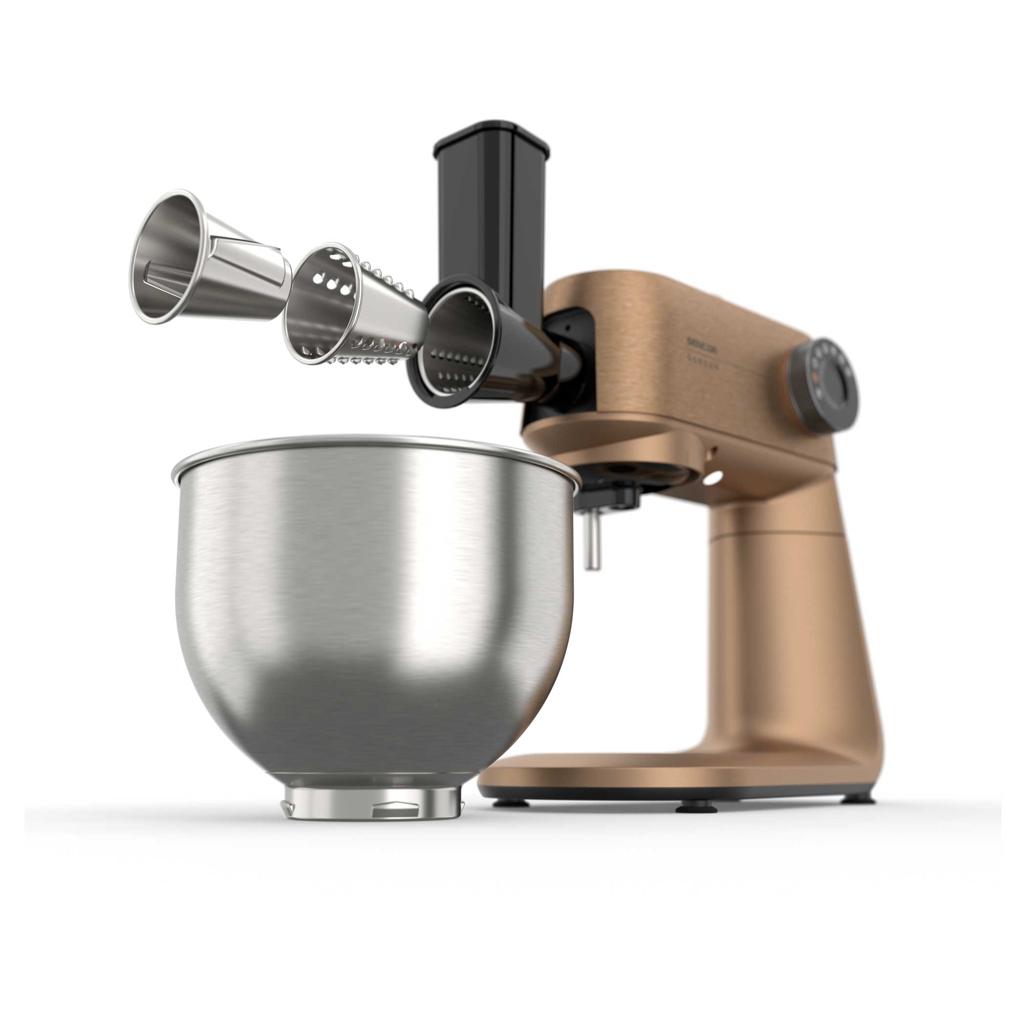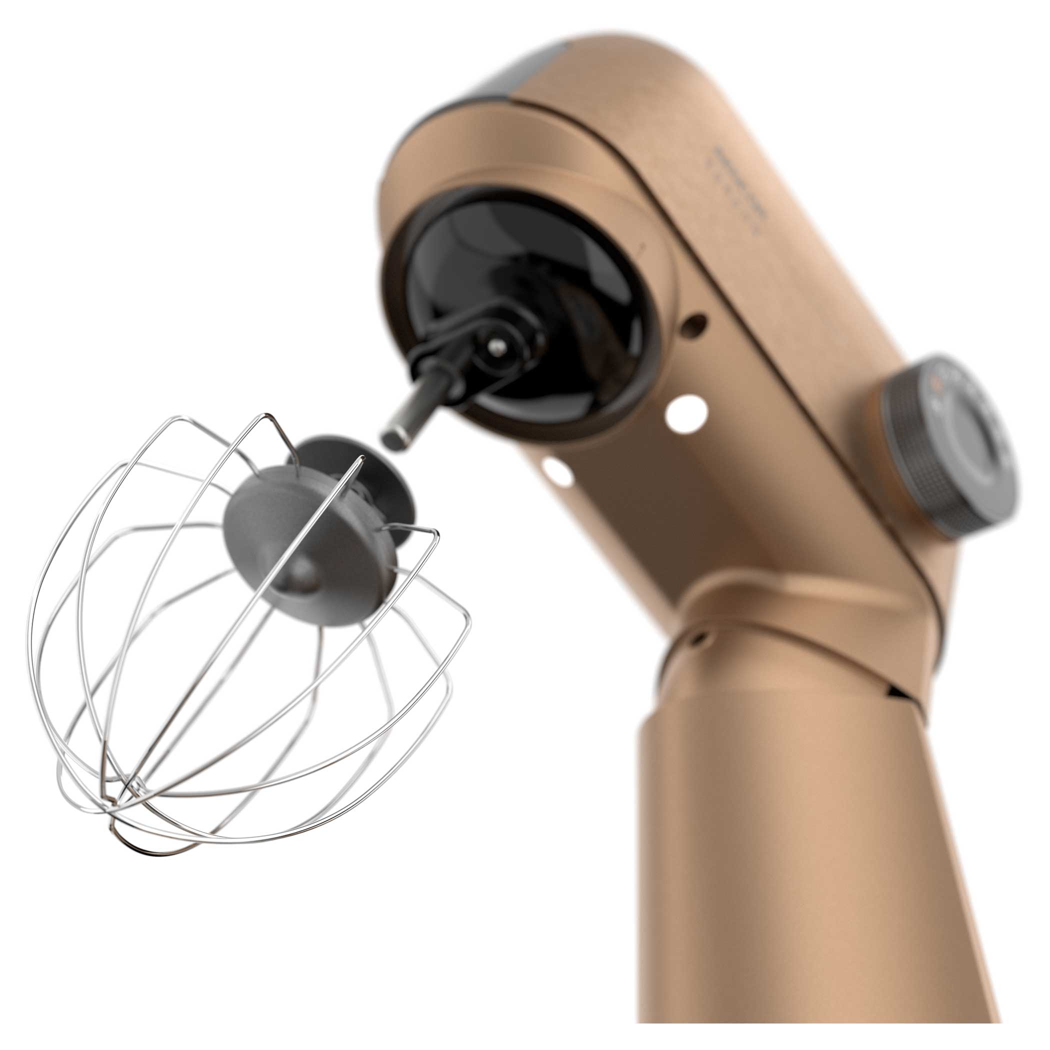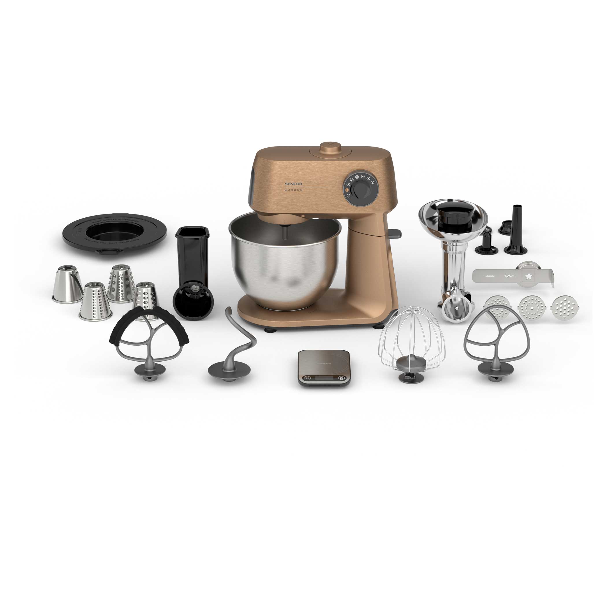 • Four metal attachments with non-stick coating for kneading, beating and light doughs