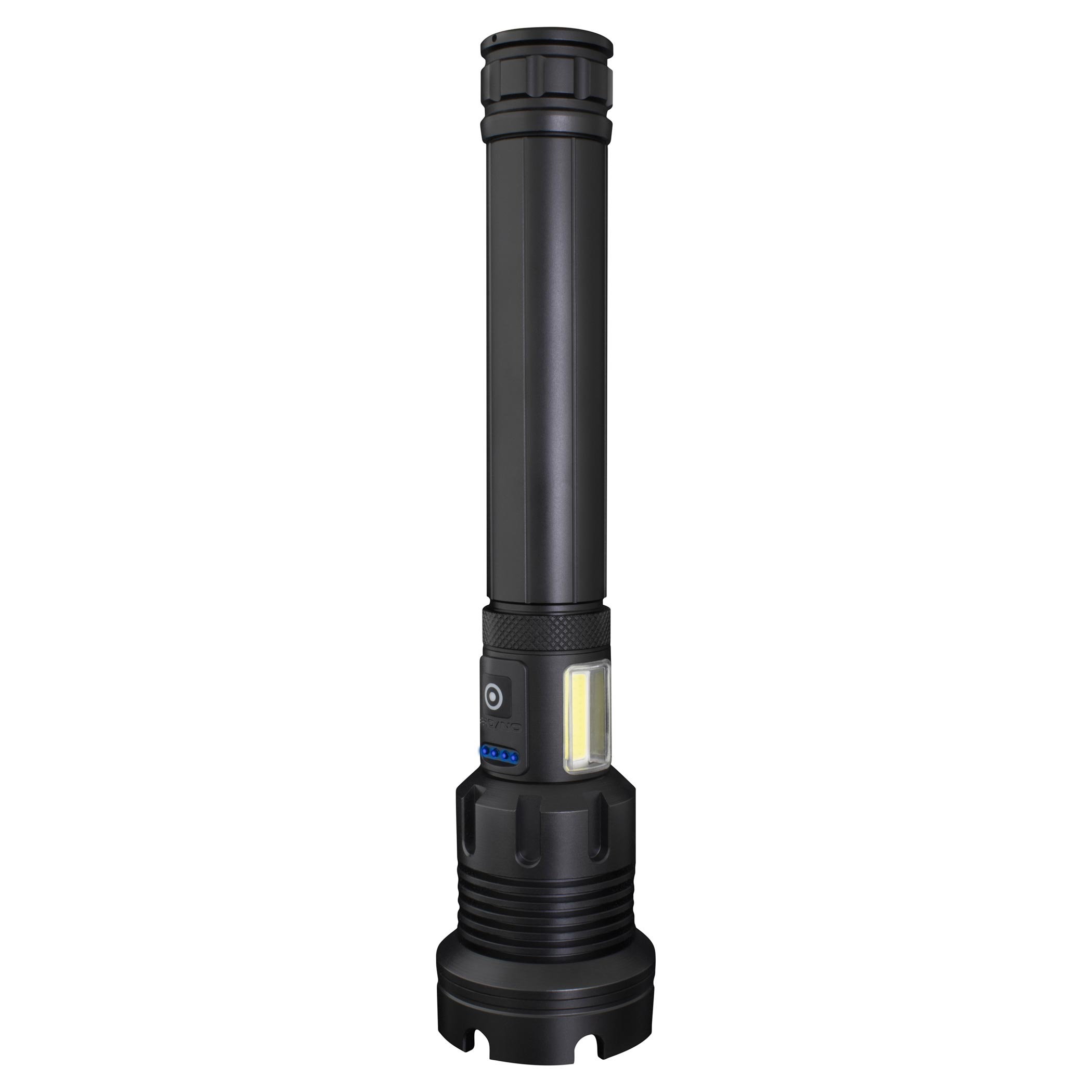 The torch is equipped with a power bank and COB side light with 200lm and red light.