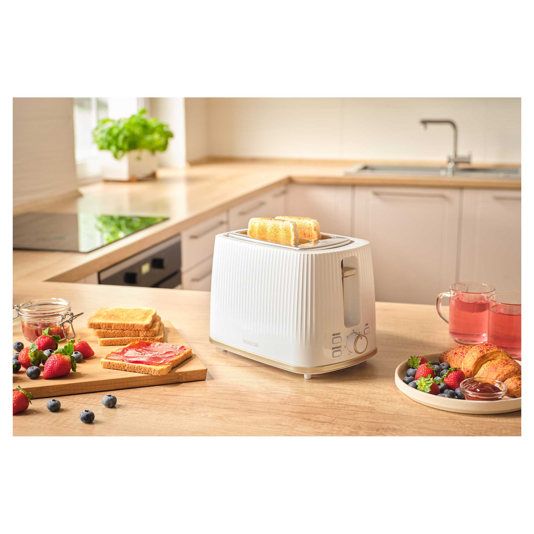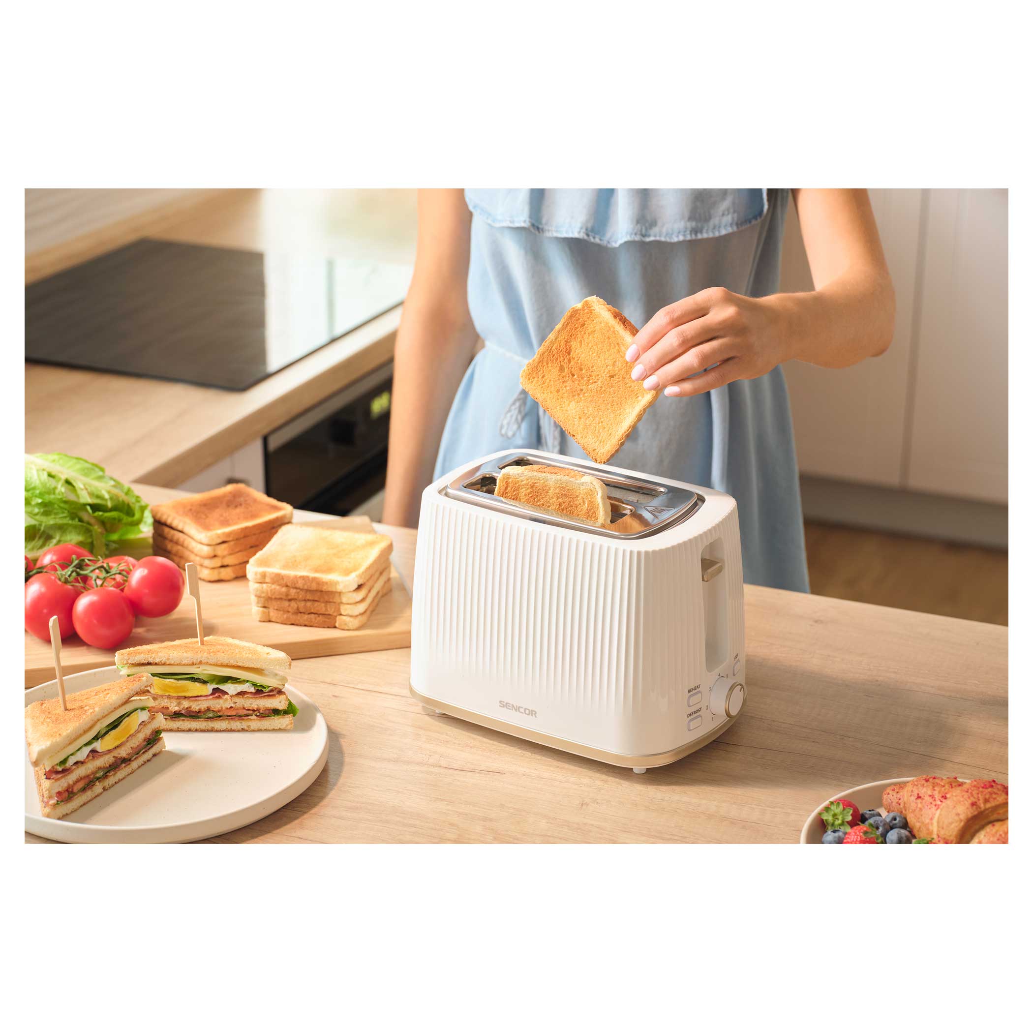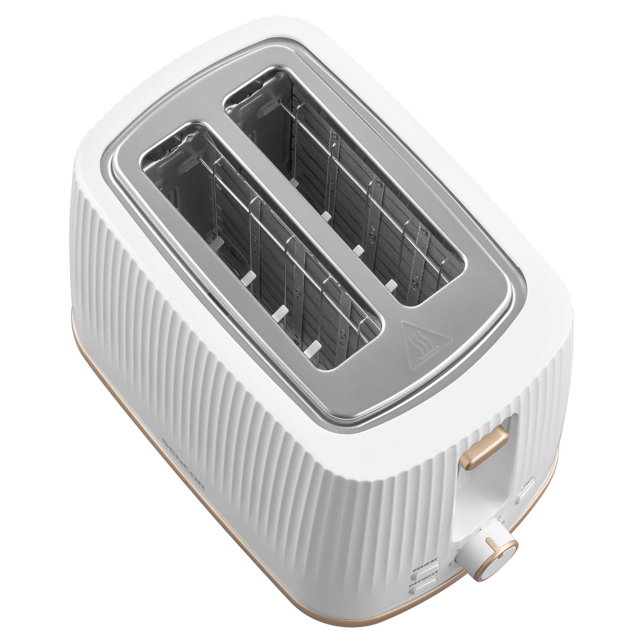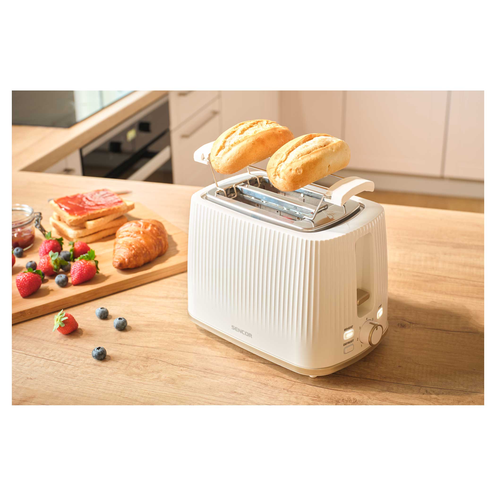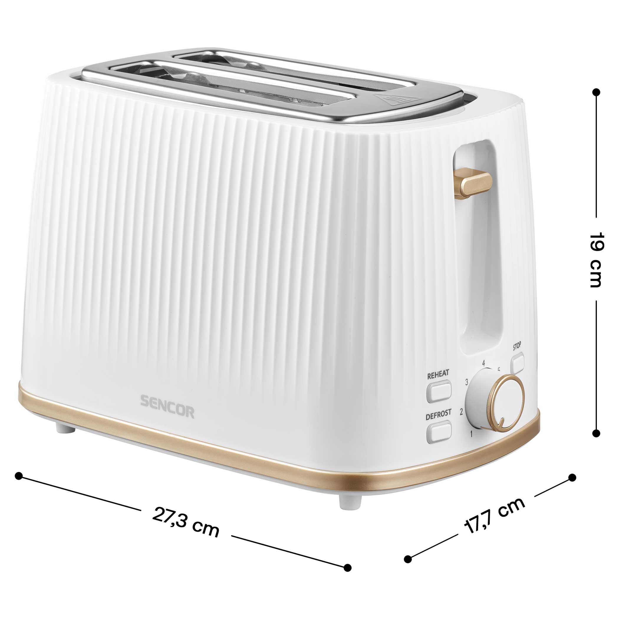 With the toaster with 2 toasting slots and 7 toasting intensity levels, you can easily prepare toasts the way you like them. Thanks to several functions, it heats, toasts and defrosts pastries. It also prepares buns or baguettes with the help of the toasting grid. For a quick interruption of operation, it has an instant stop toasting function.• 2 toasting slots