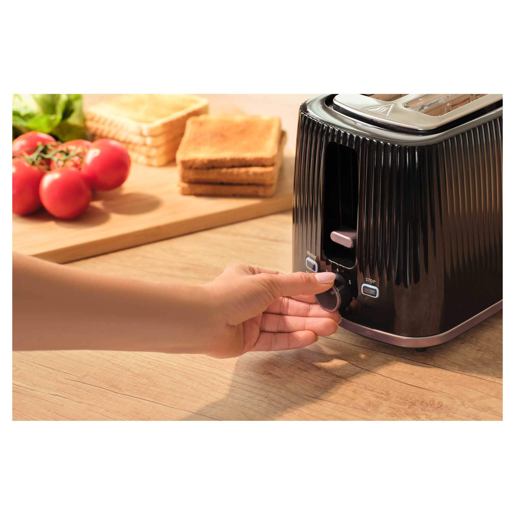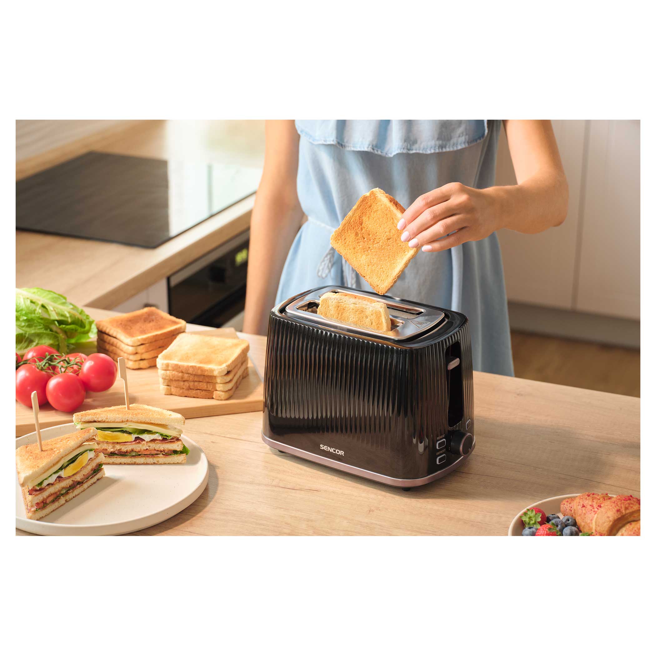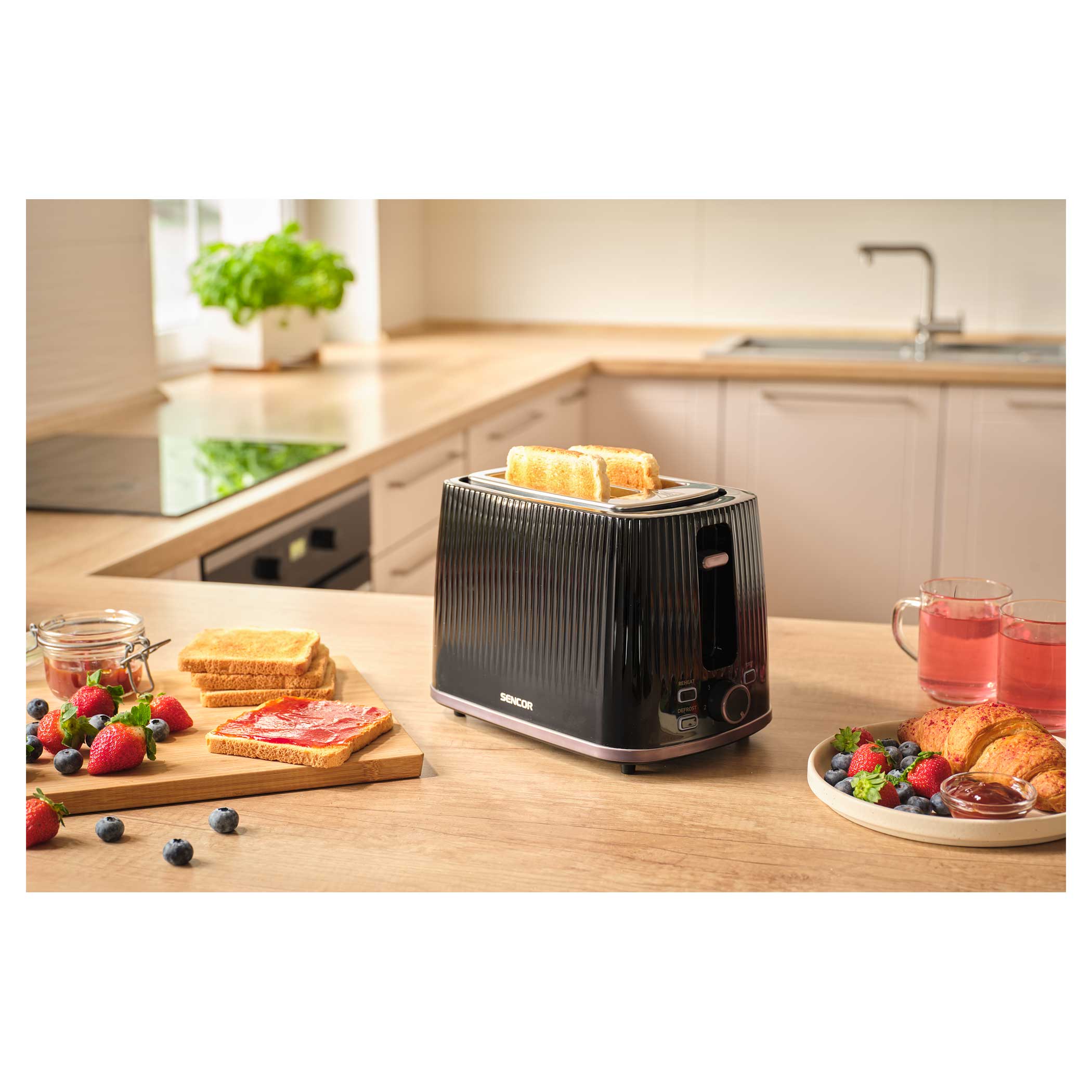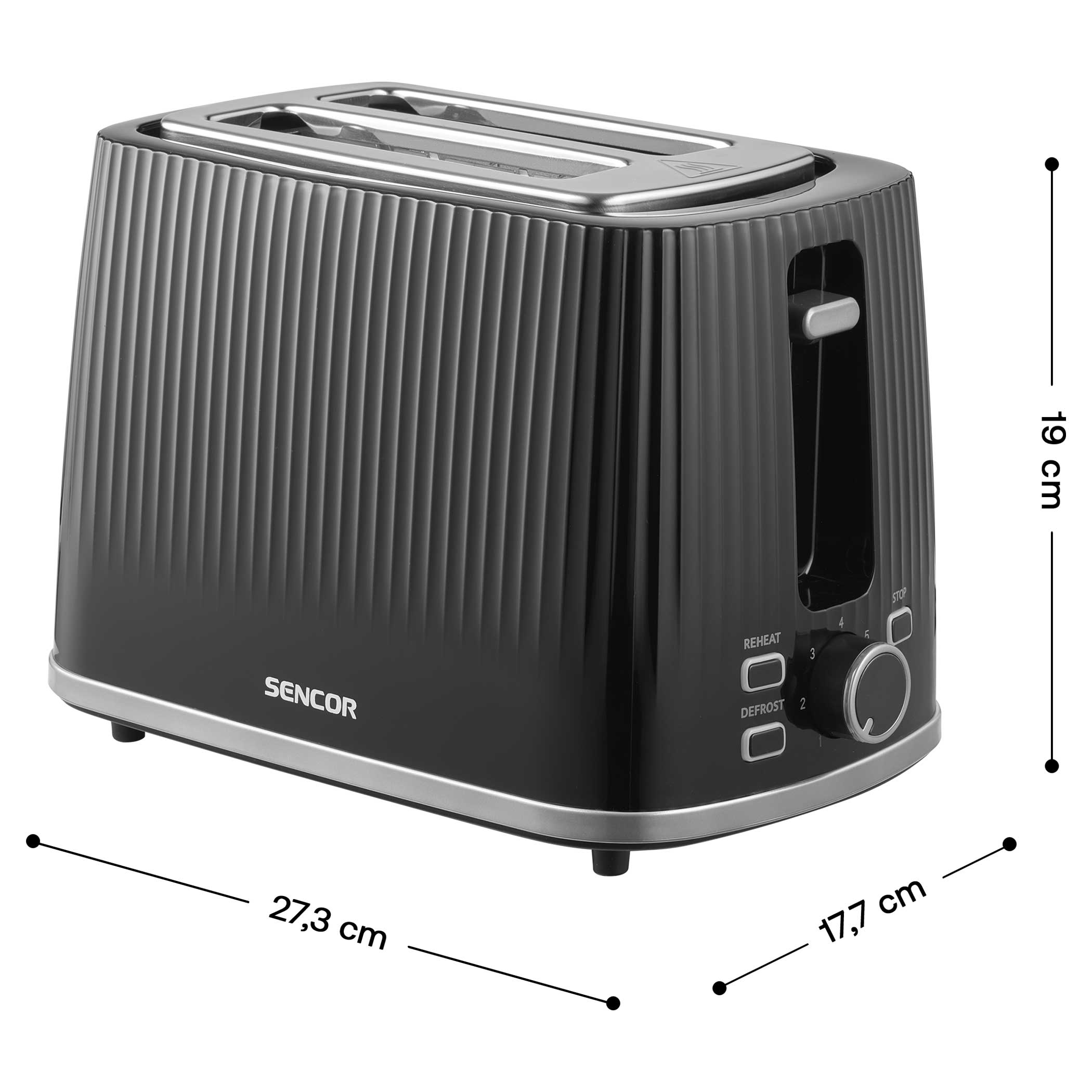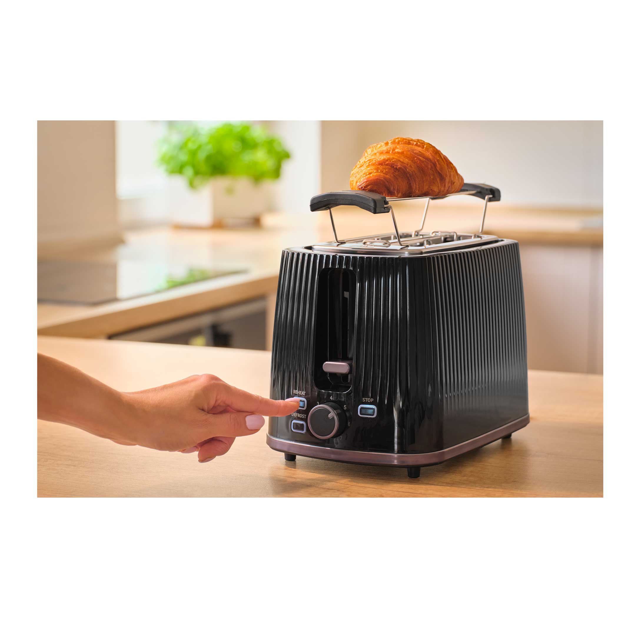 With the toaster with 2 toasting slots and 7 toasting intensity levels, you can easily prepare toasts the way you like them. Thanks to several functions, it heats, toasts and defrosts pastries. It also prepares buns or baguettes with the help of the toasting grid. For a quick interruption of operation, it has an instant stop toasting function.- 2 toasting slots