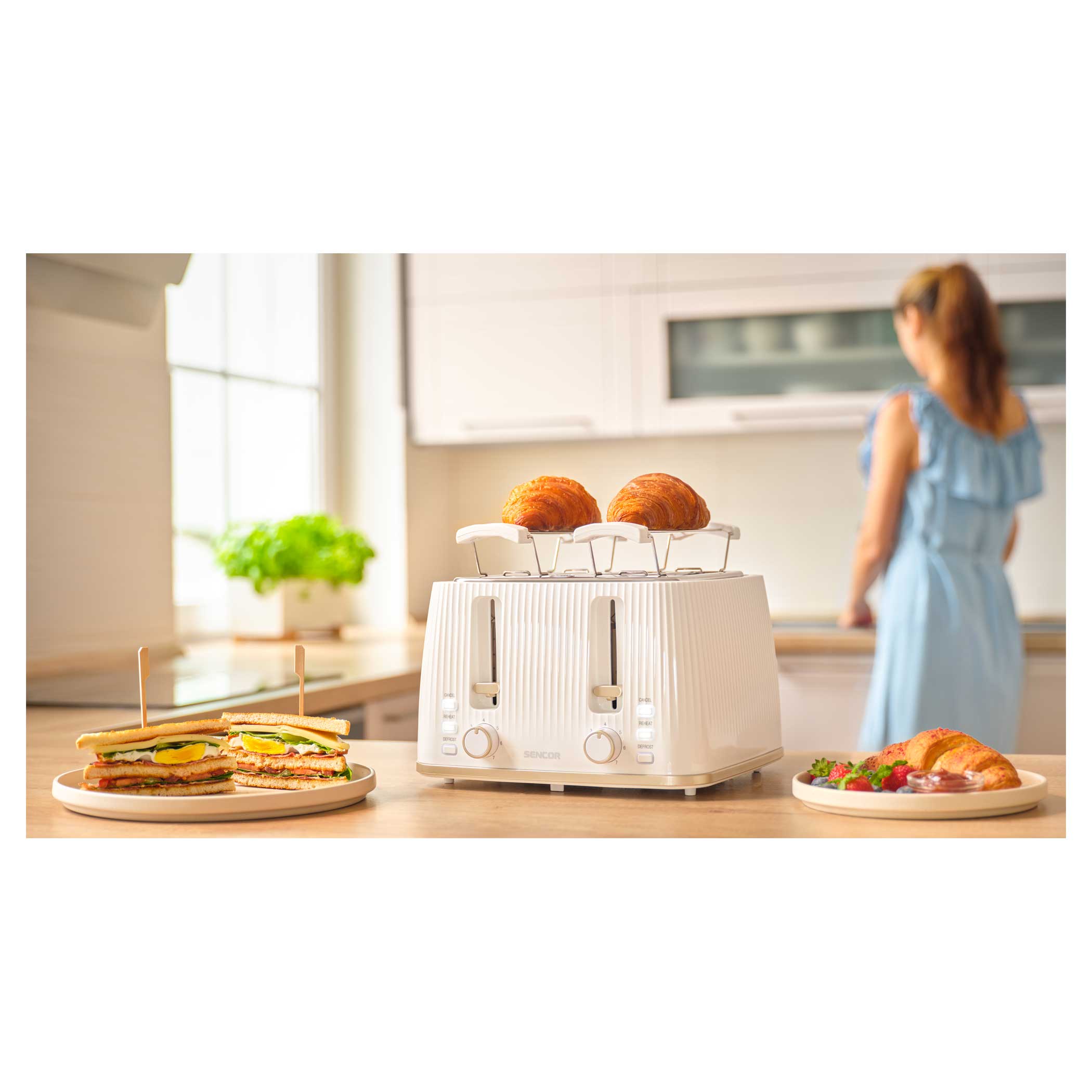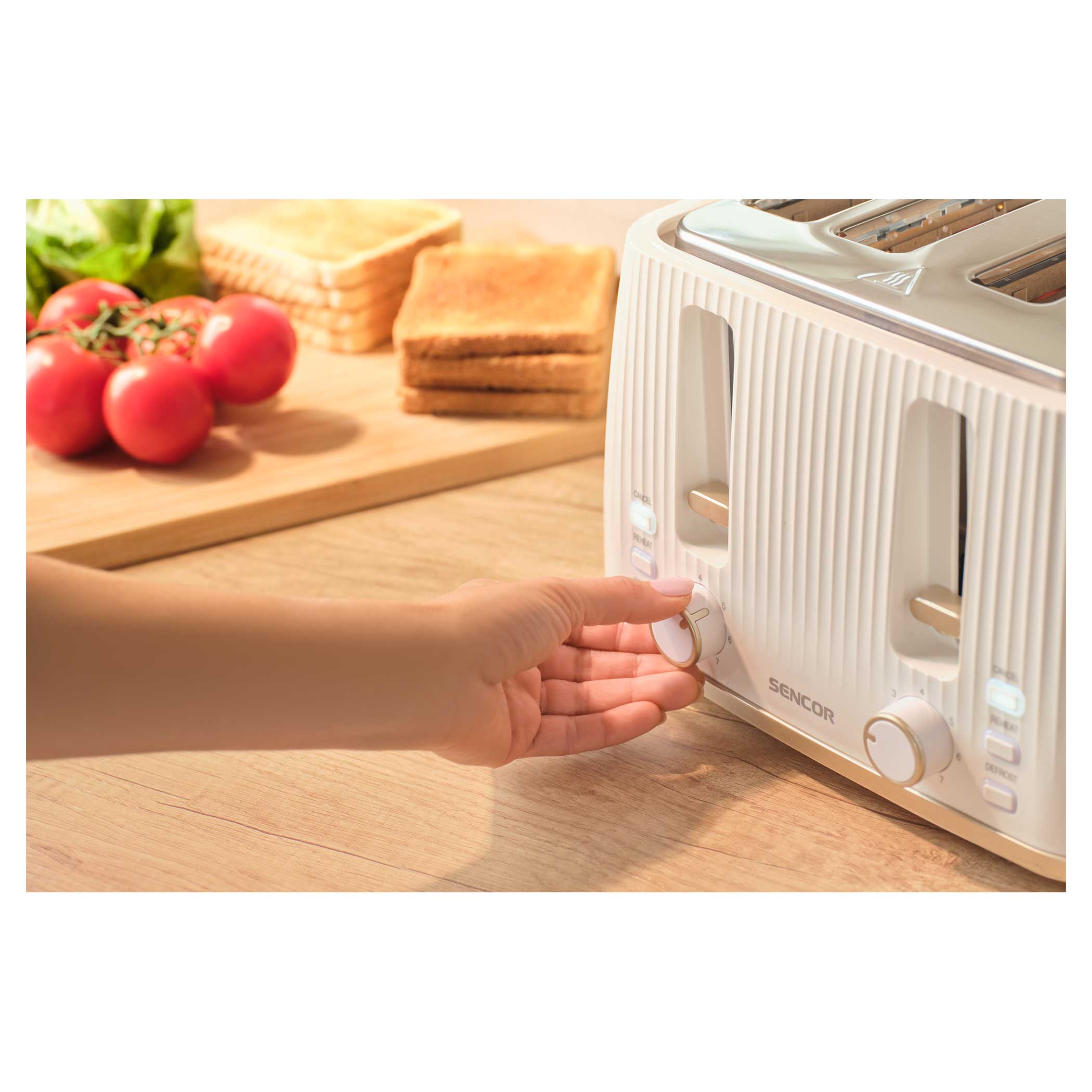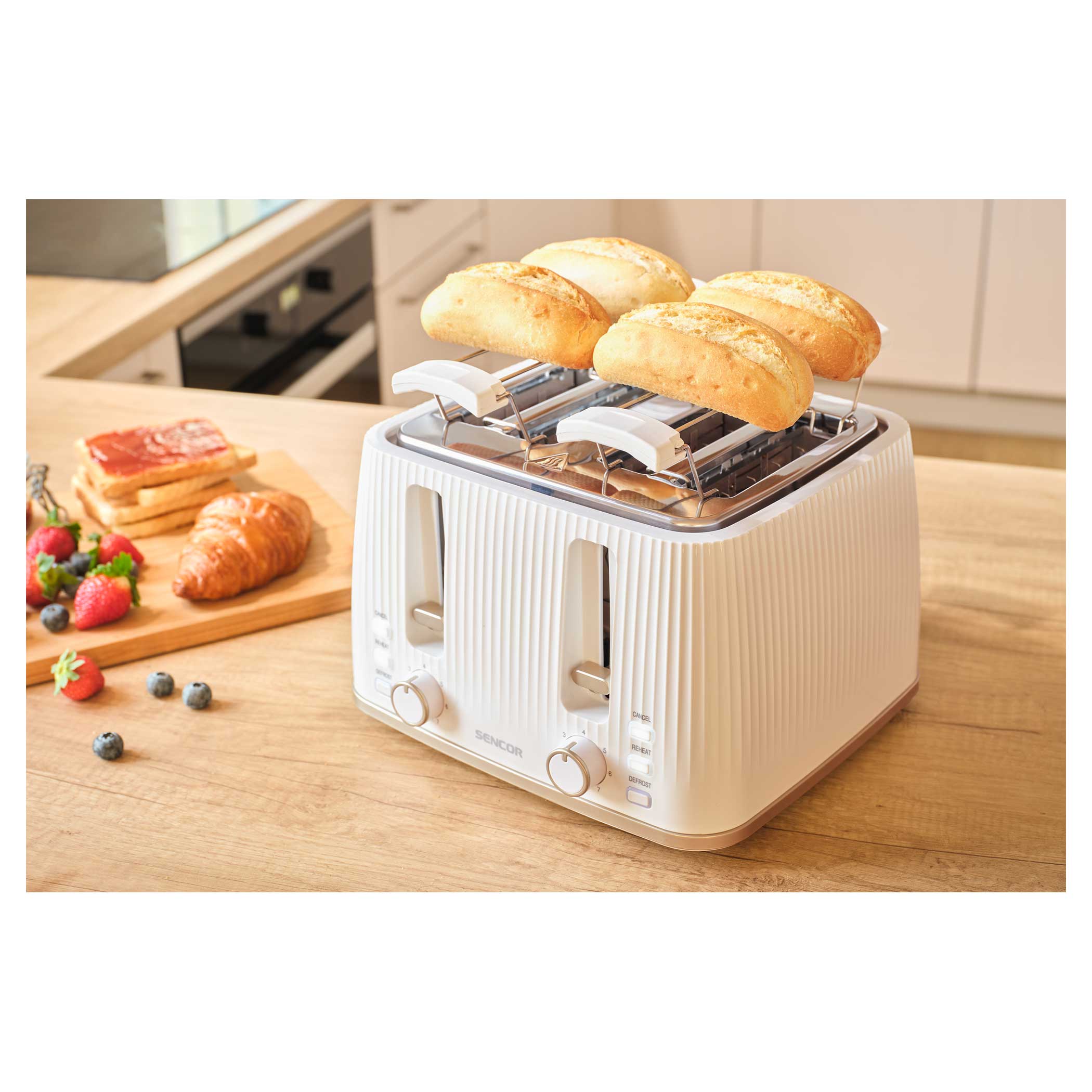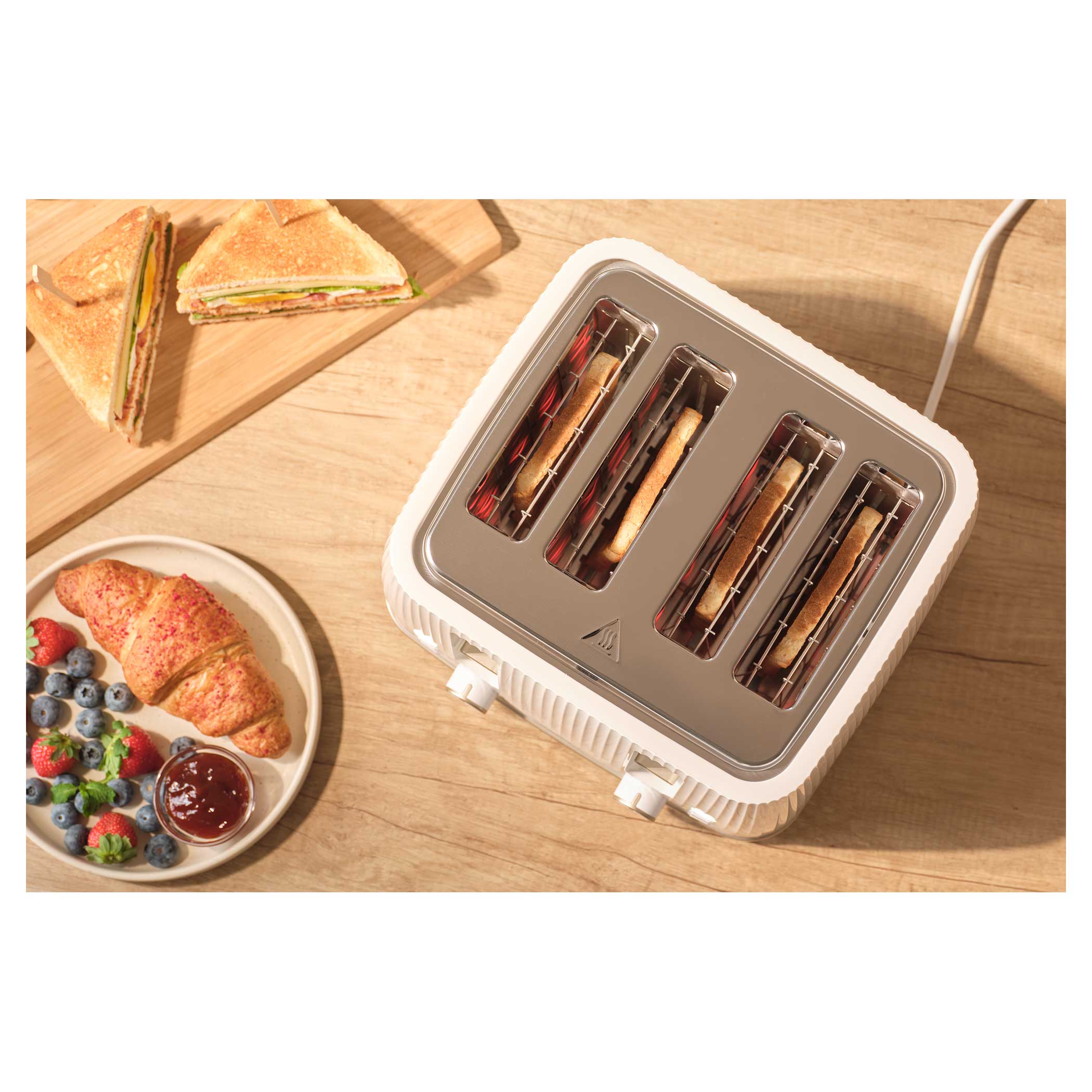 With the toaster, you can easily prepare toast exactly according to your preferences with the help of 7 toasting intensity levels and 4 toasting slots. You can use the toasting grid to toast different types of bread. Thanks to 3 functions, it heats, toasts and defrosts bread. If necessary, you have an instant stop function.