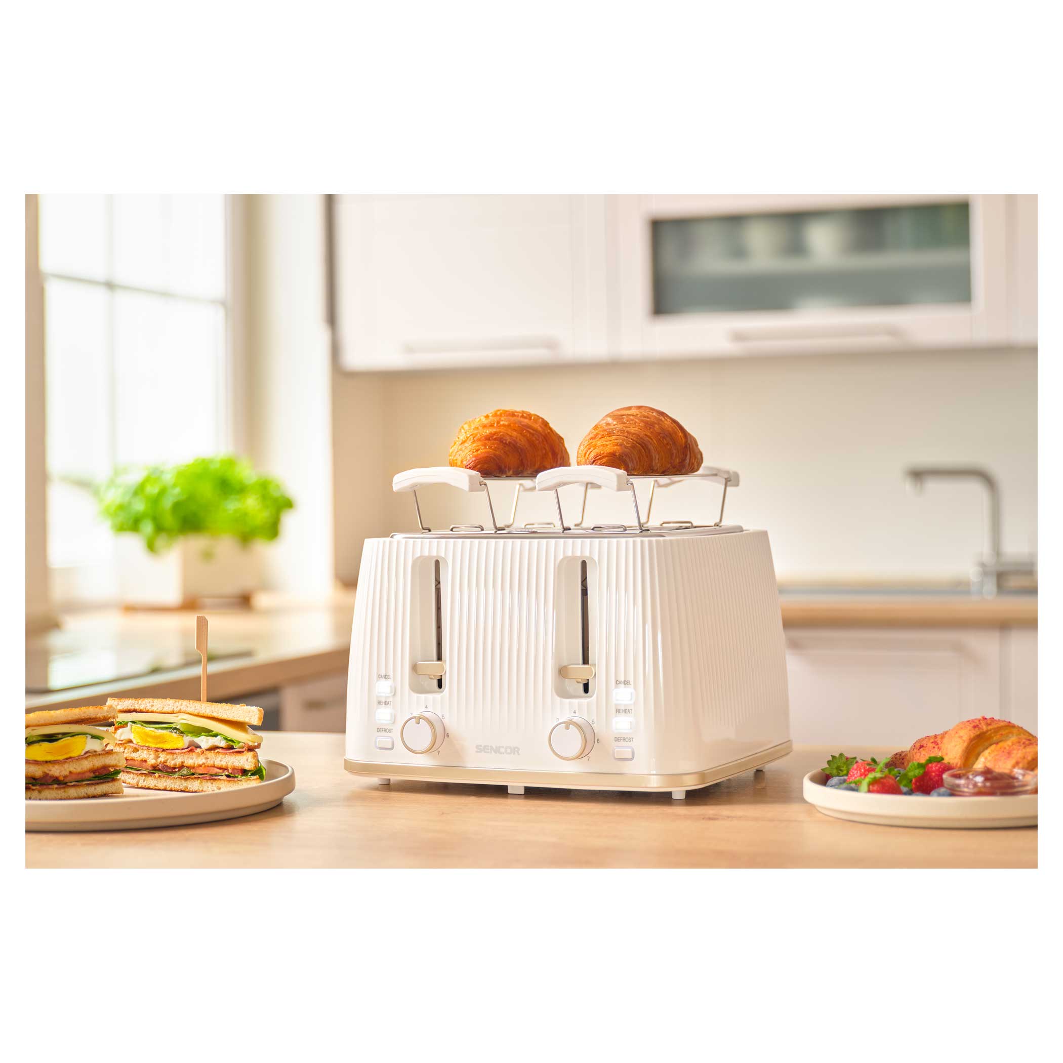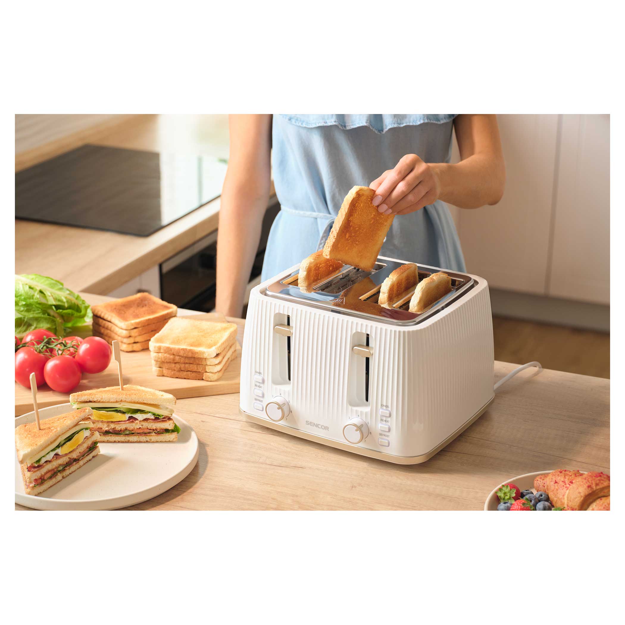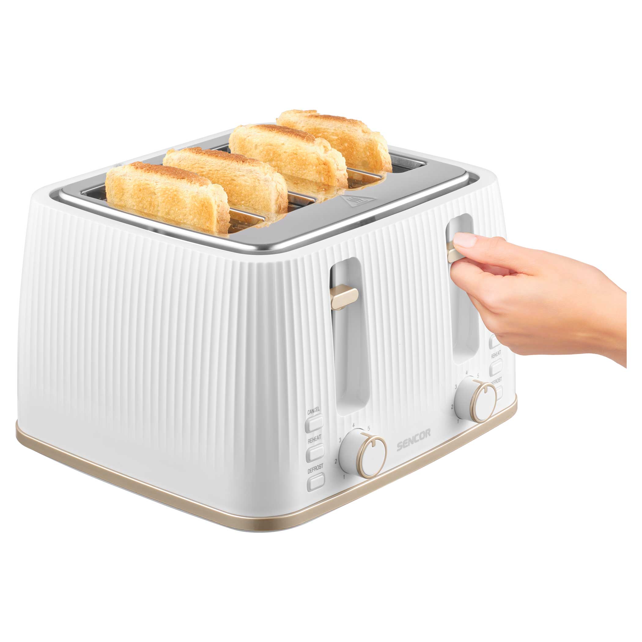 With the toaster, you can easily prepare toast exactly according to your preferences with the help of 7 toasting intensity levels and 4 toasting slots. You can use the toasting grid to toast different types of bread. Thanks to 3 functions, it heats, toasts and defrosts bread. If necessary, you have an instant stop function.