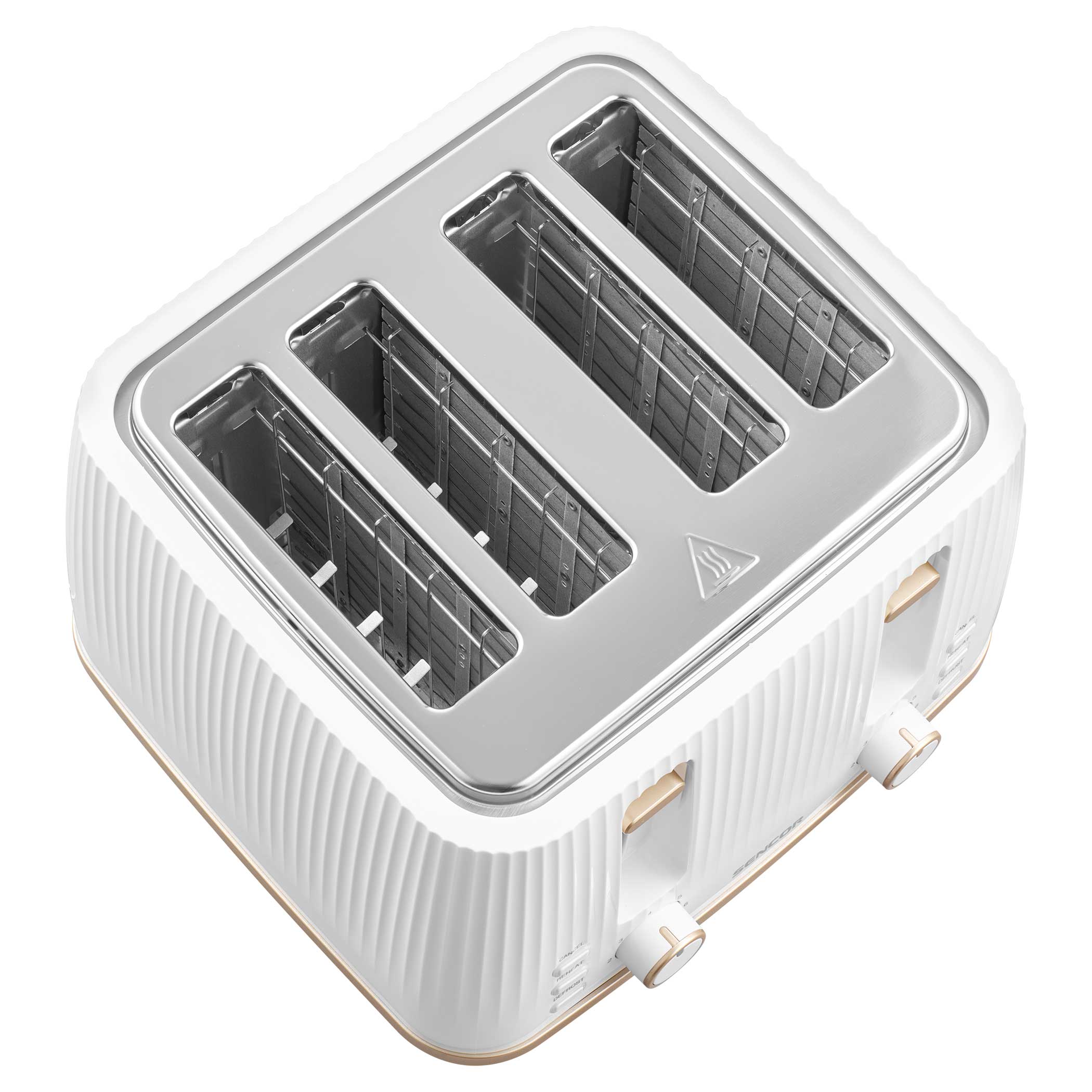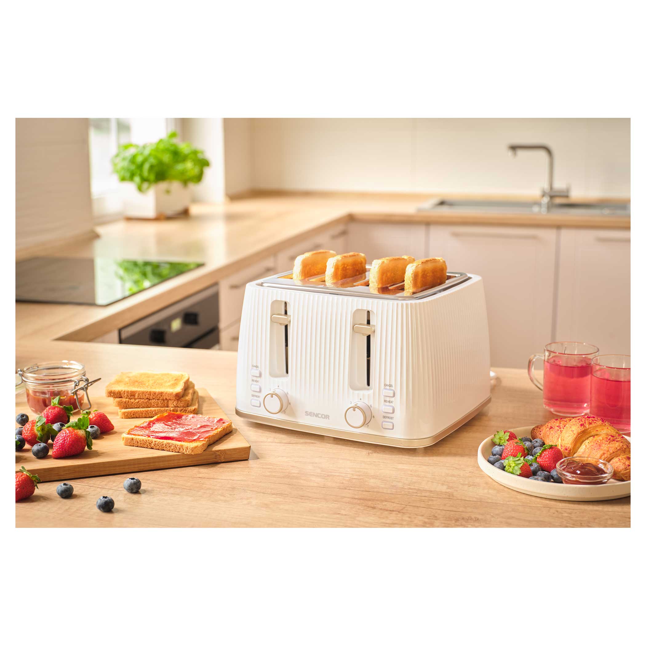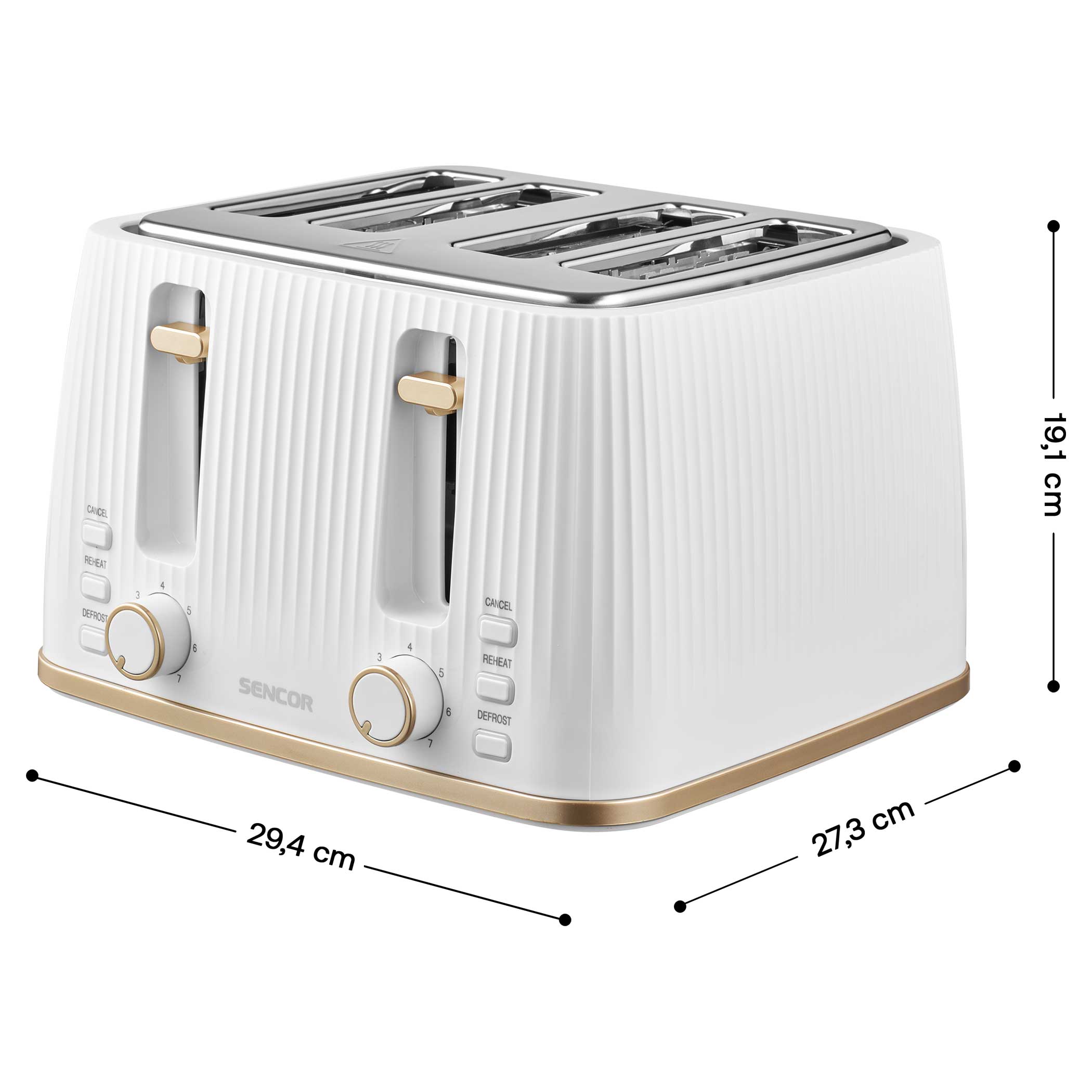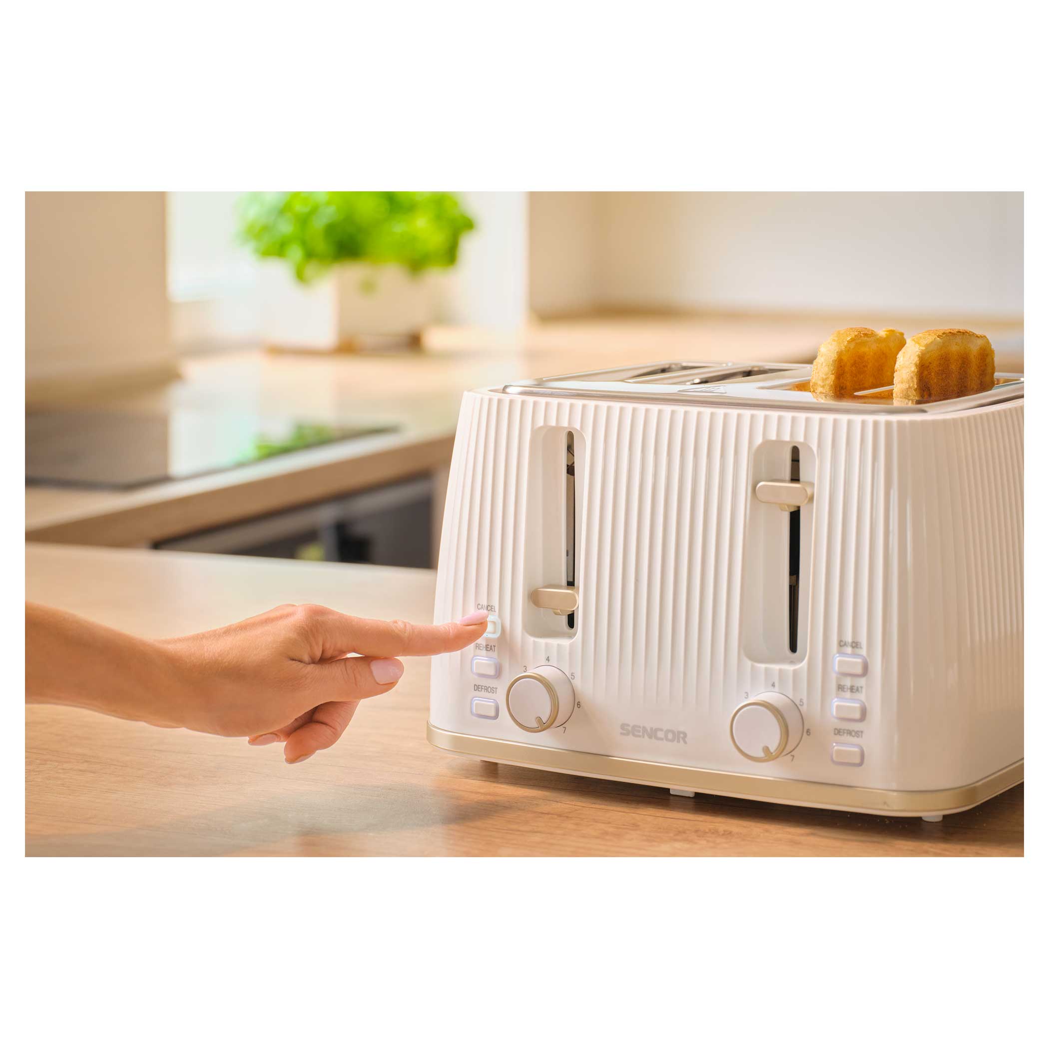 With the toaster, you can easily prepare toast exactly according to your preferences with the help of 7 toasting intensity levels and 4 toasting slots. You can use the toasting grid to toast different types of bread. Thanks to 3 functions, it heats, toasts and defrosts bread. If necessary, you have an instant stop function.