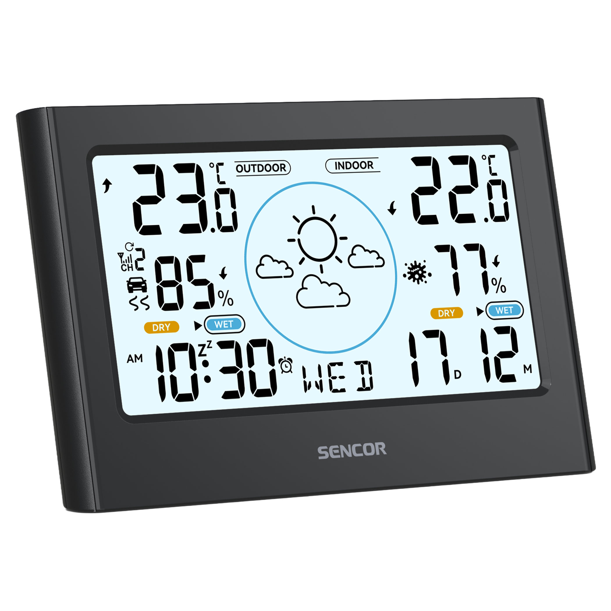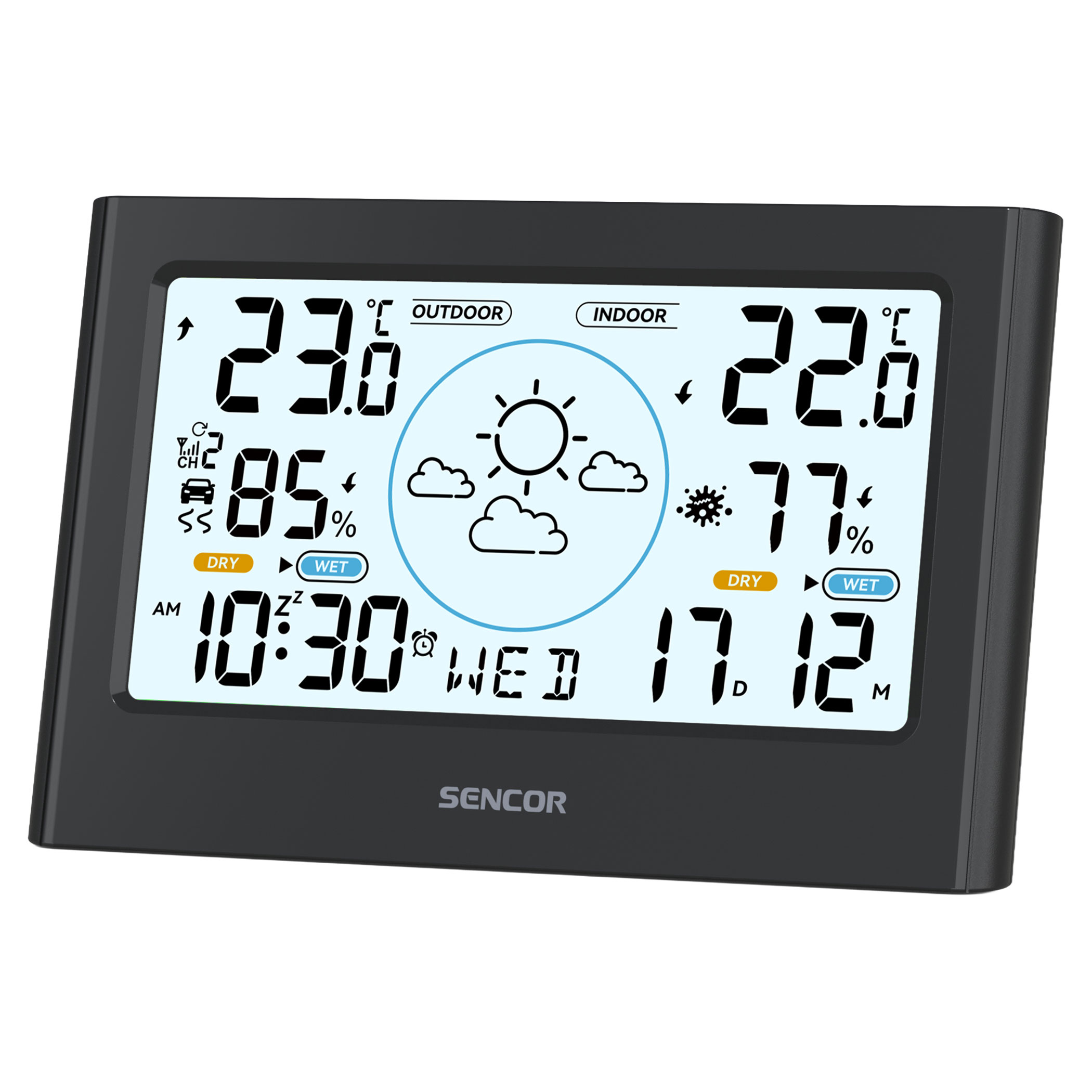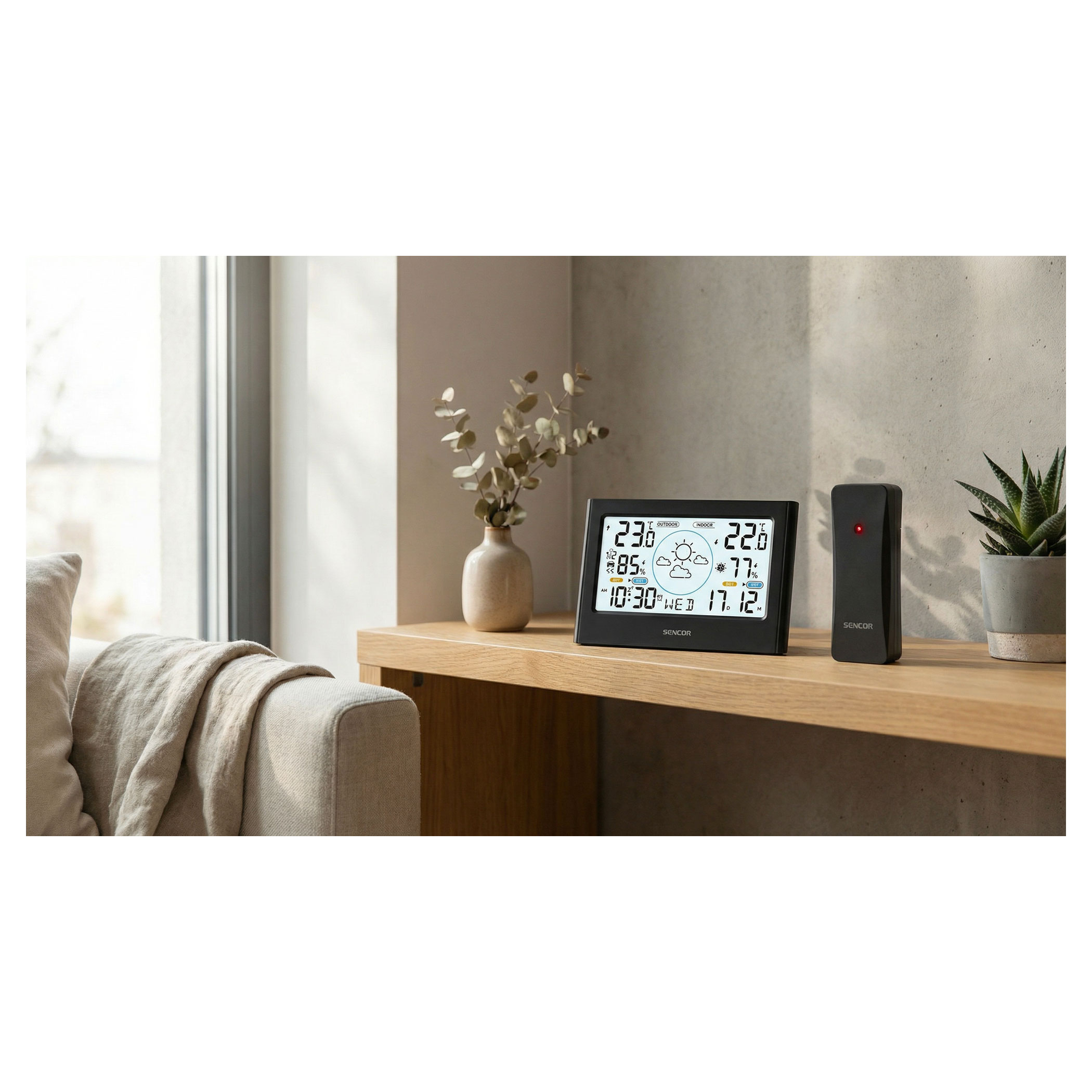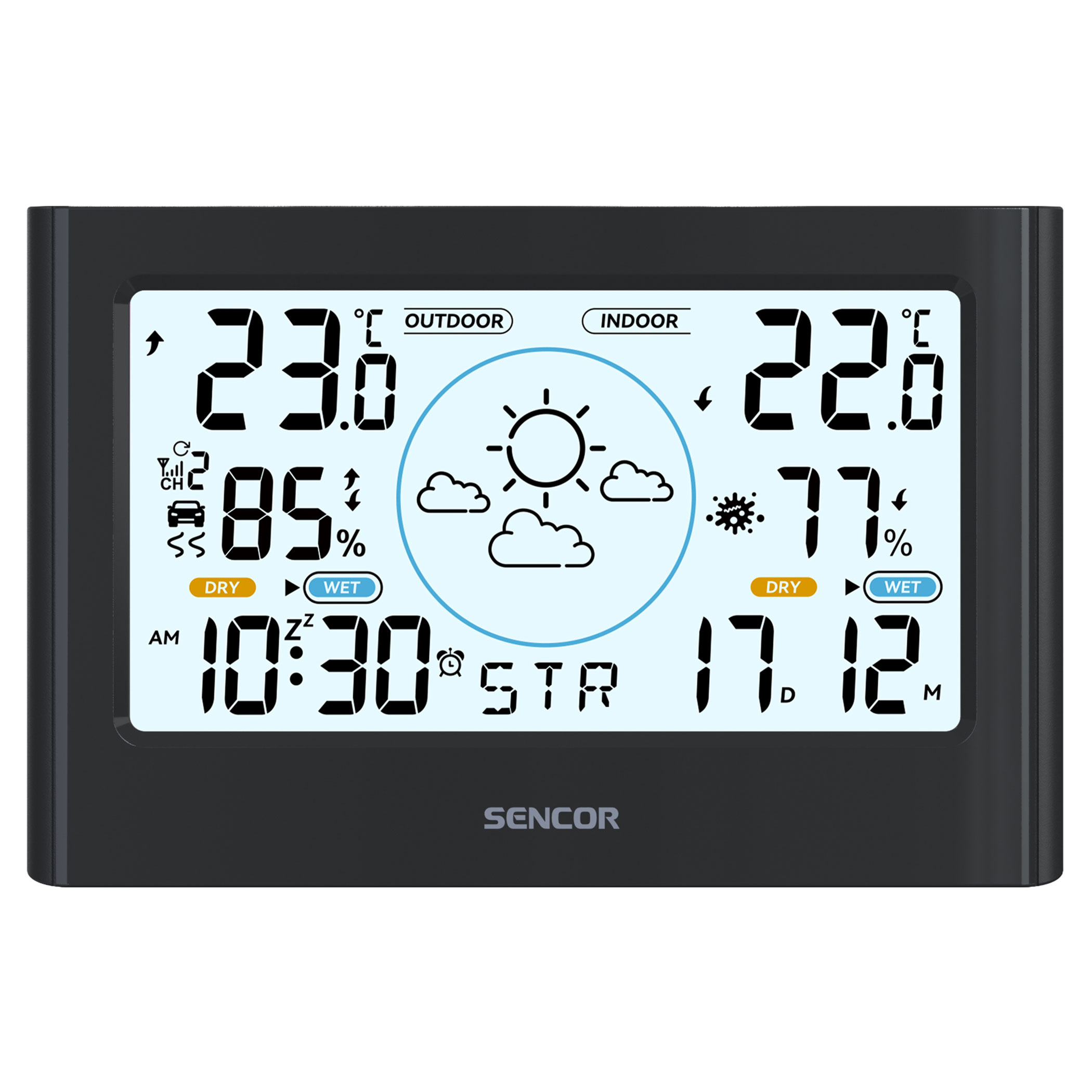 The Sencor SWS 2600 weather station accurately measures temperature and humidity thanks to a wireless sensor. It also warns of icy conditions, mold risk, and shows the current comfort level.