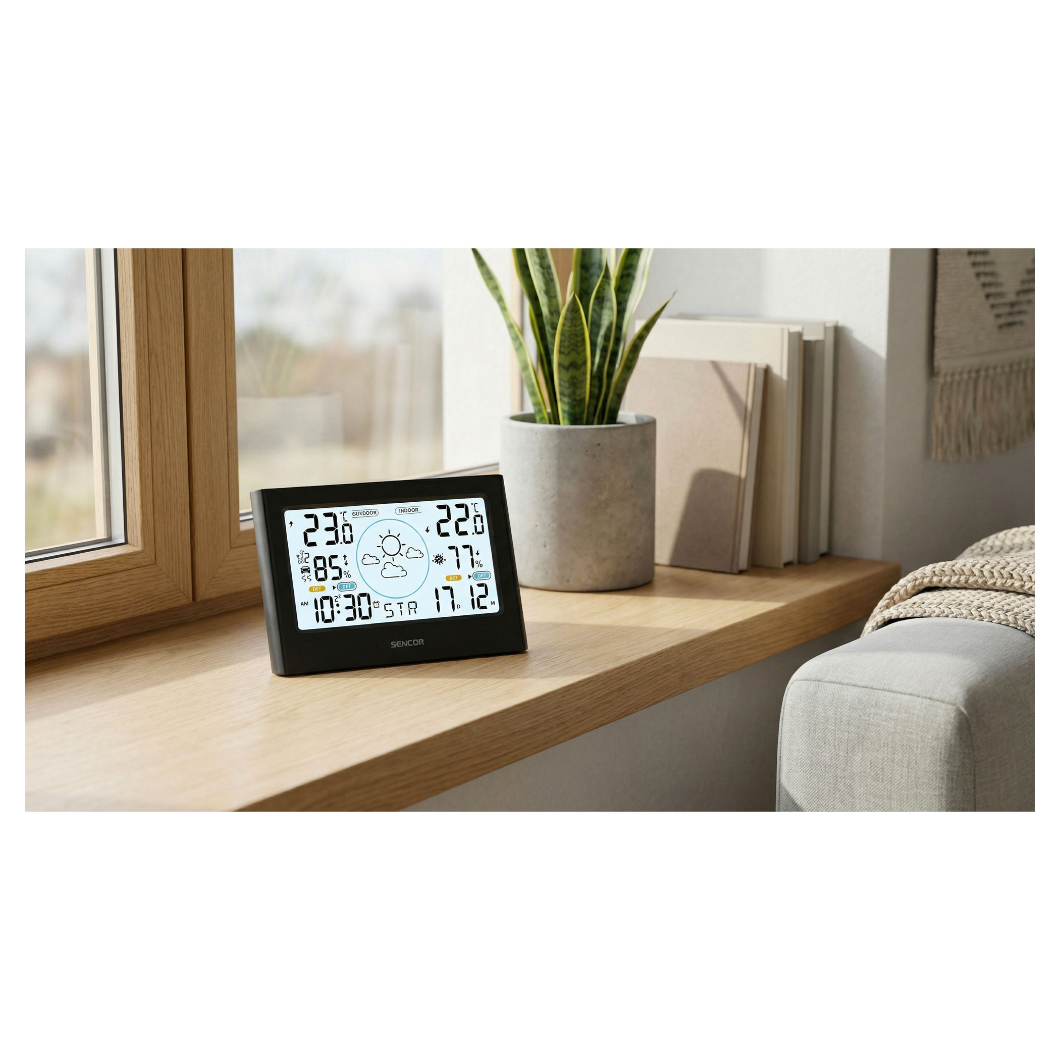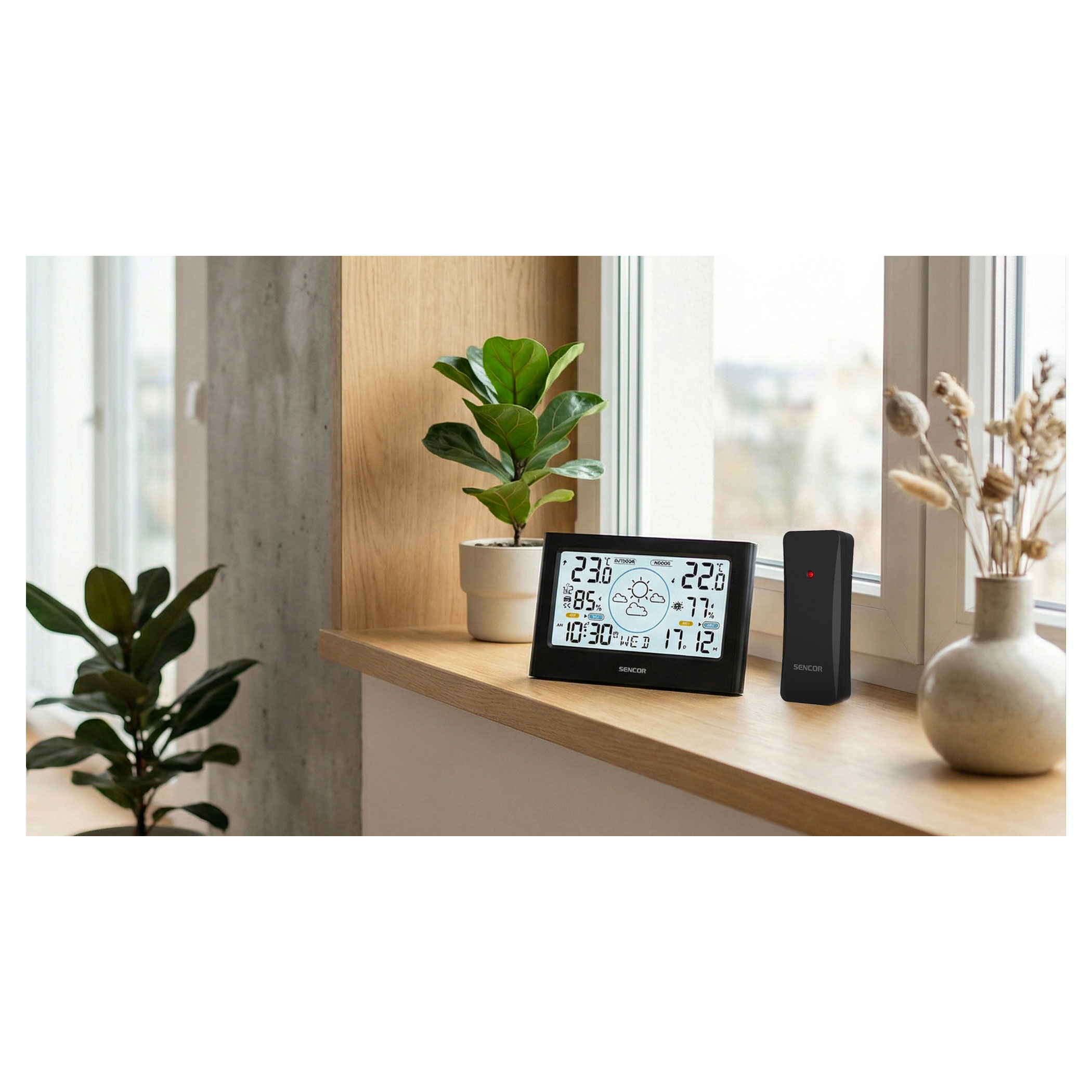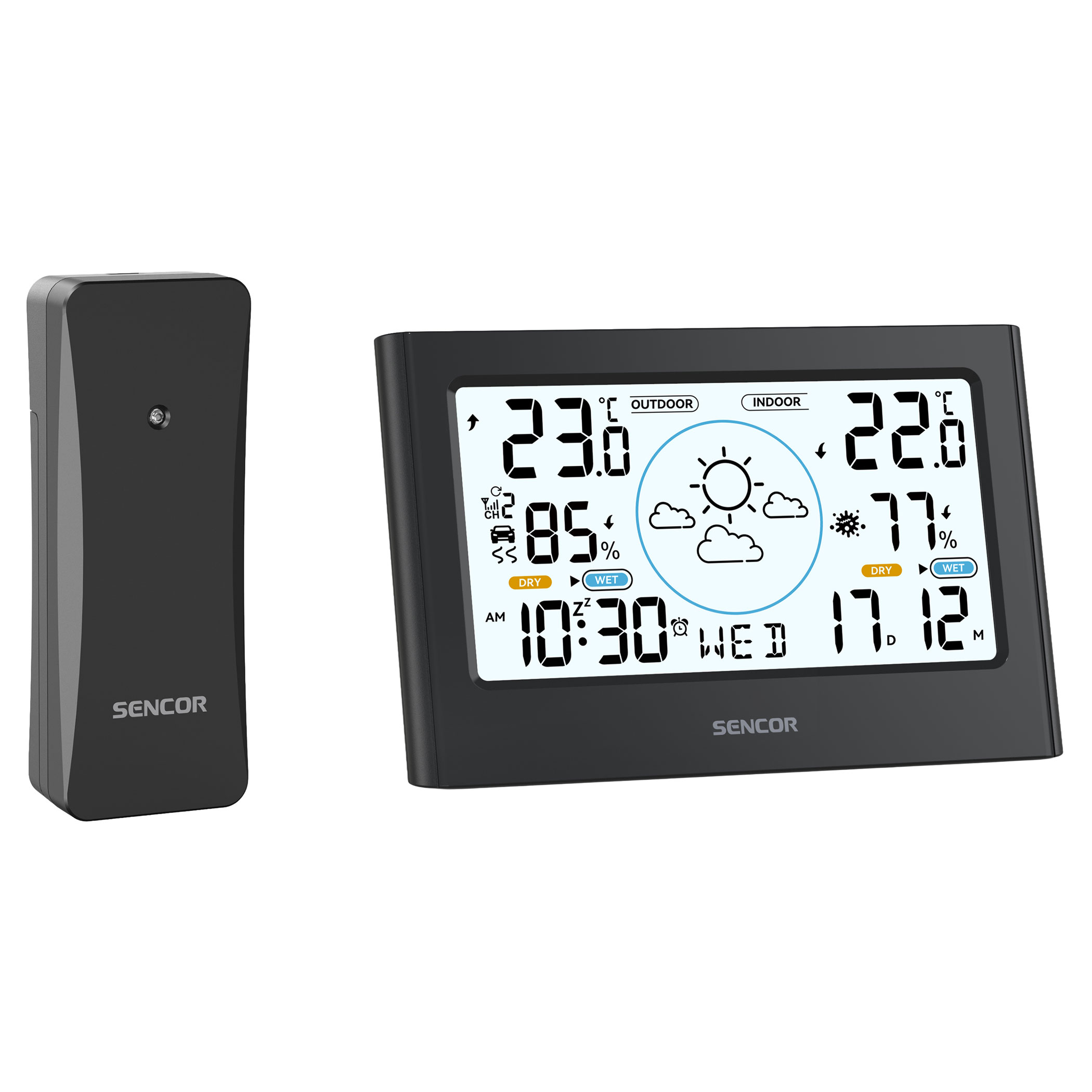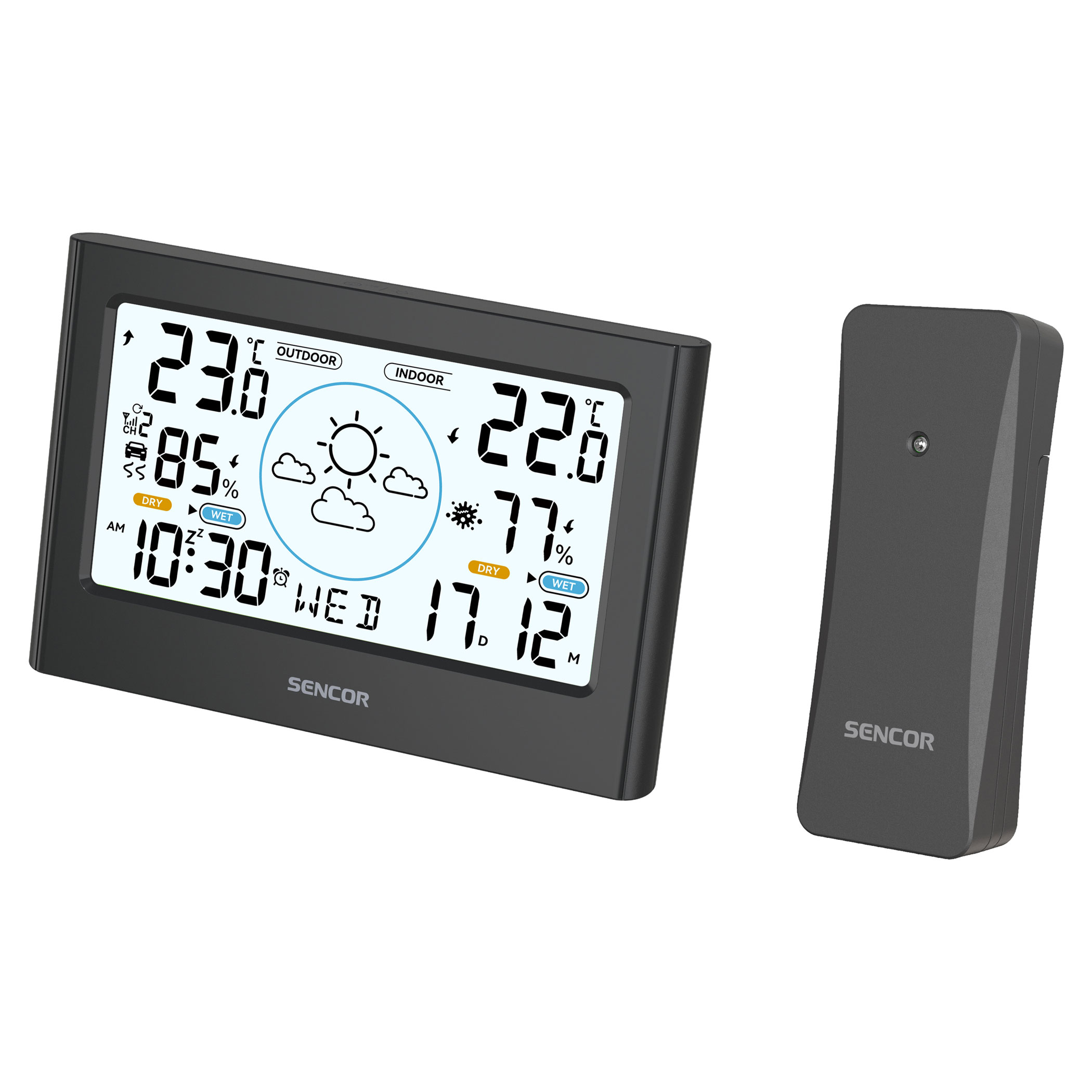 The Sencor SWS 2600 weather station accurately measures temperature and humidity thanks to a wireless sensor. It also warns of icy conditions, mold risk, and shows the current comfort level.
