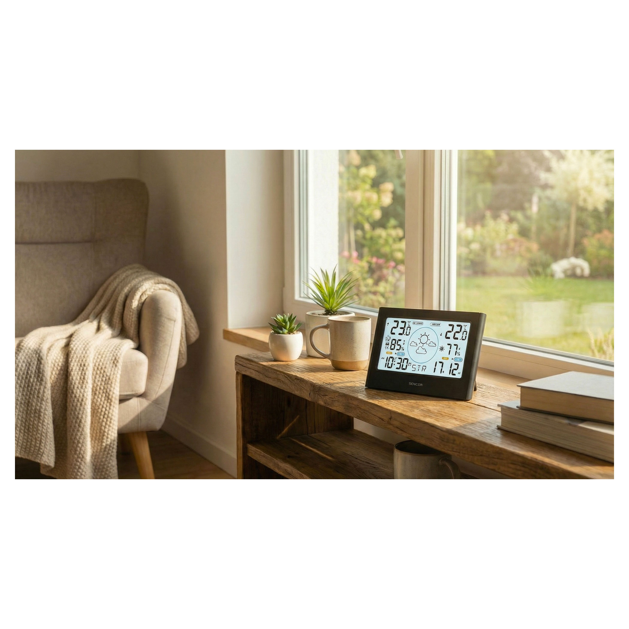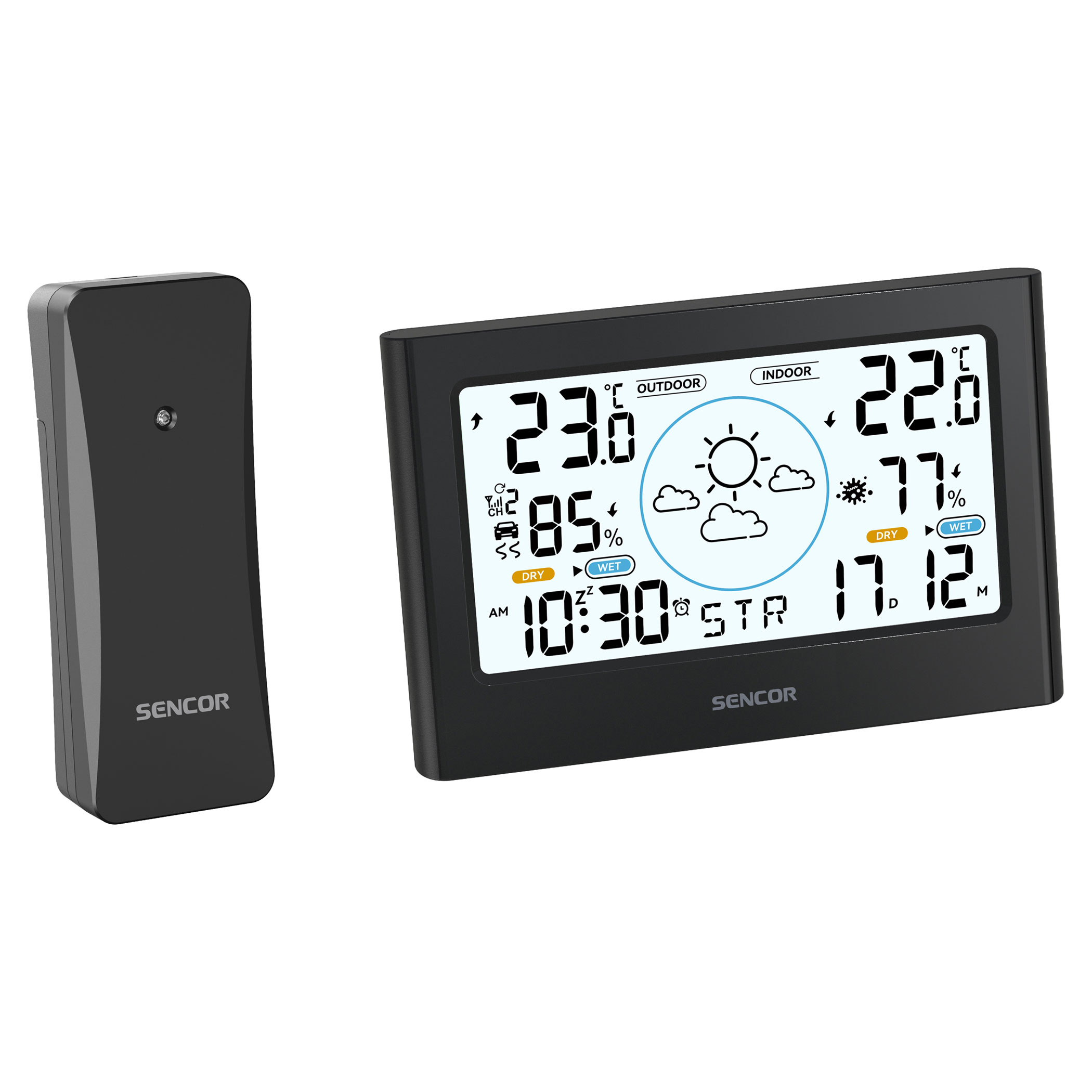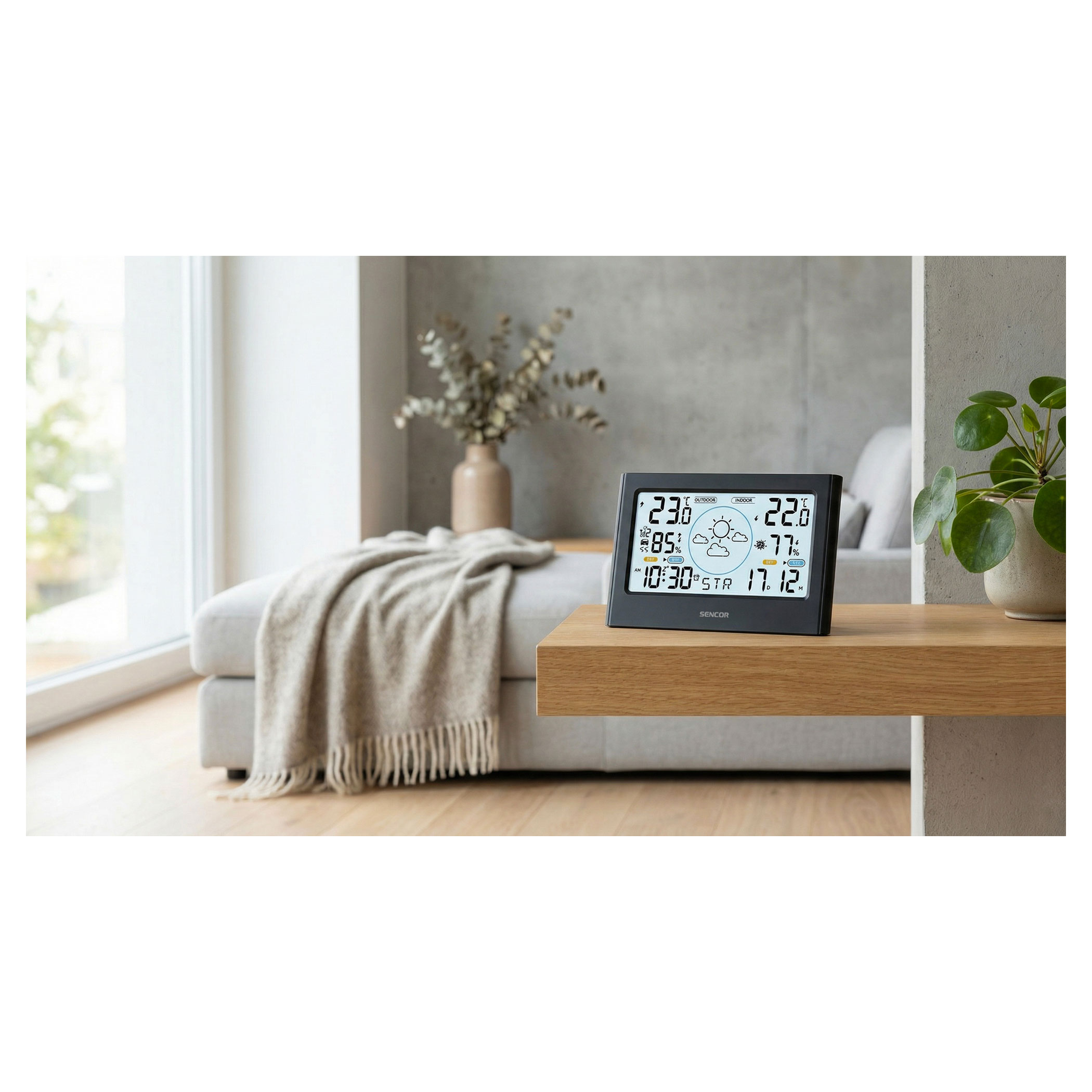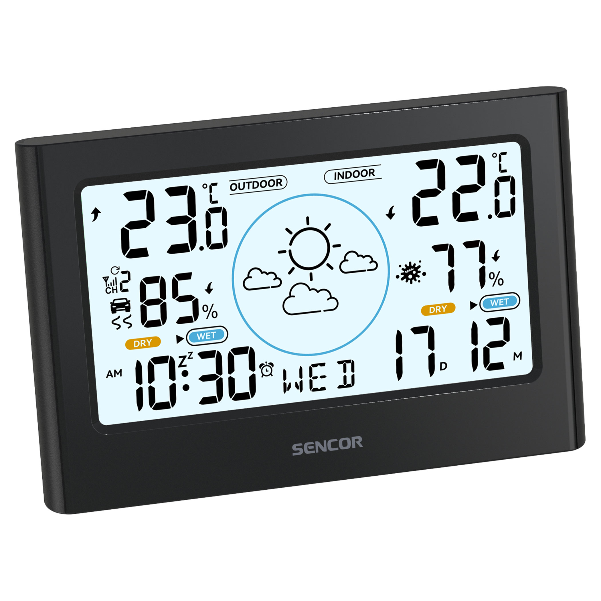 The Sencor SWS 2600 weather station accurately measures temperature and humidity thanks to a wireless sensor. It also warns of icy conditions, mold risk, and shows the current comfort level.