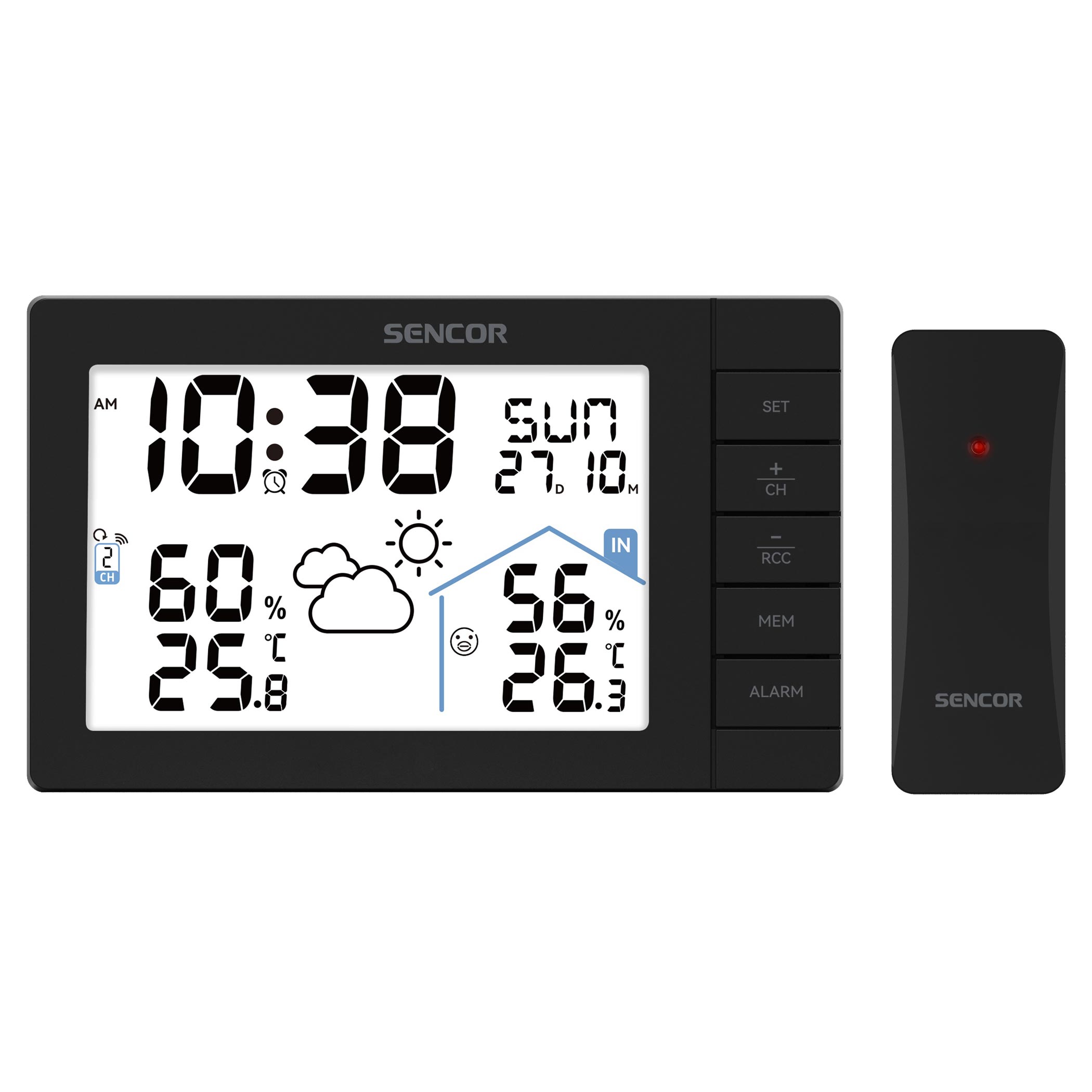 Are you often caught off guard by unexpected weather? With the SENCOR SWS 3200 weather station, you won't be. Simply place or mount the station in a convenient spot indoors and insert 3 AA batteries. The outdoor sensor, designed for garden or balcony use, is wireless and requires 2 AA batteries. You can position it up to 80 metres from the station. After a few minutes of gathering information, the sensor sends real-time data to the station, displaying a 12–24-hour weather forecast with icons.