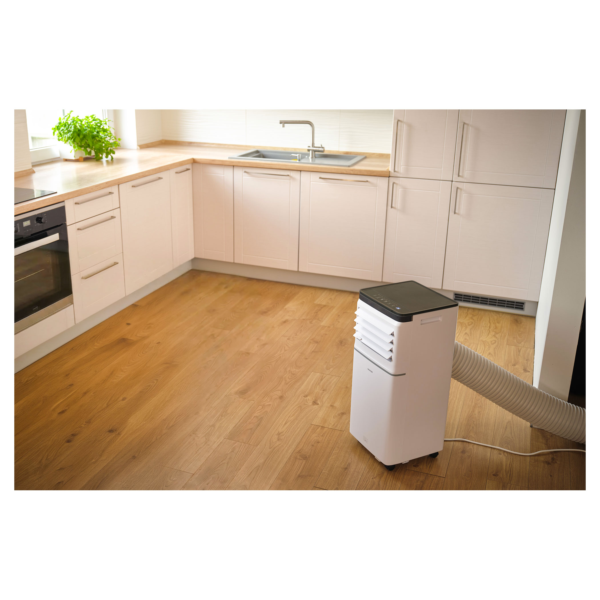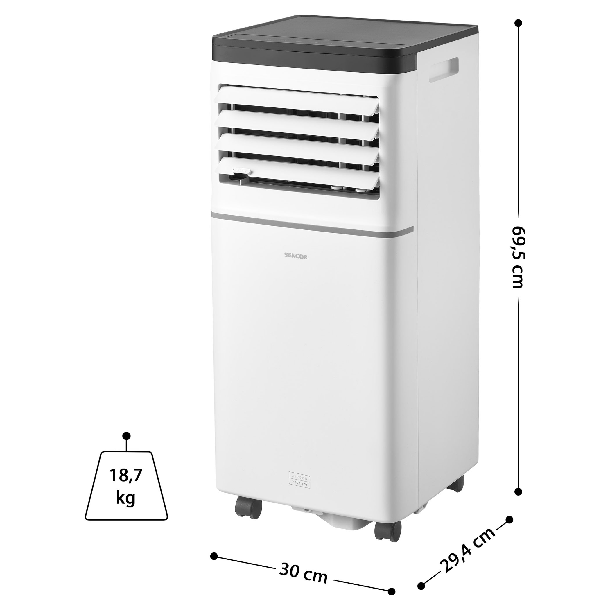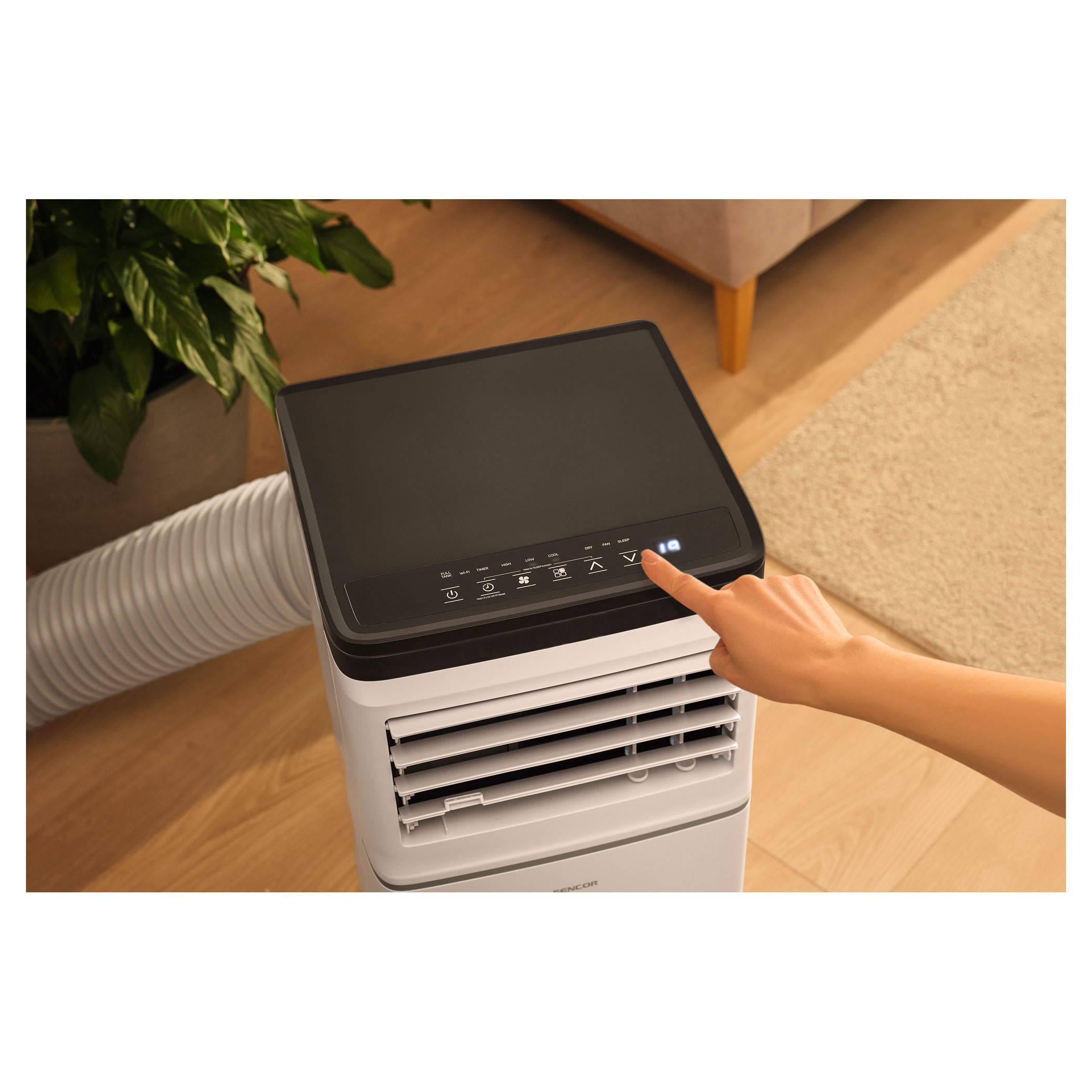 The SAC MT7042C Sencor Wi-Fi Portable Air Conditioner will protect you against heat and high temperatures. It's output of 7,000 BTU/h in class A energy class efficiency enables you to easily and effectively cool down a smaller office, room or even bedroom.Easy to control, completely portable and importantly Sencor HOME functionality.
