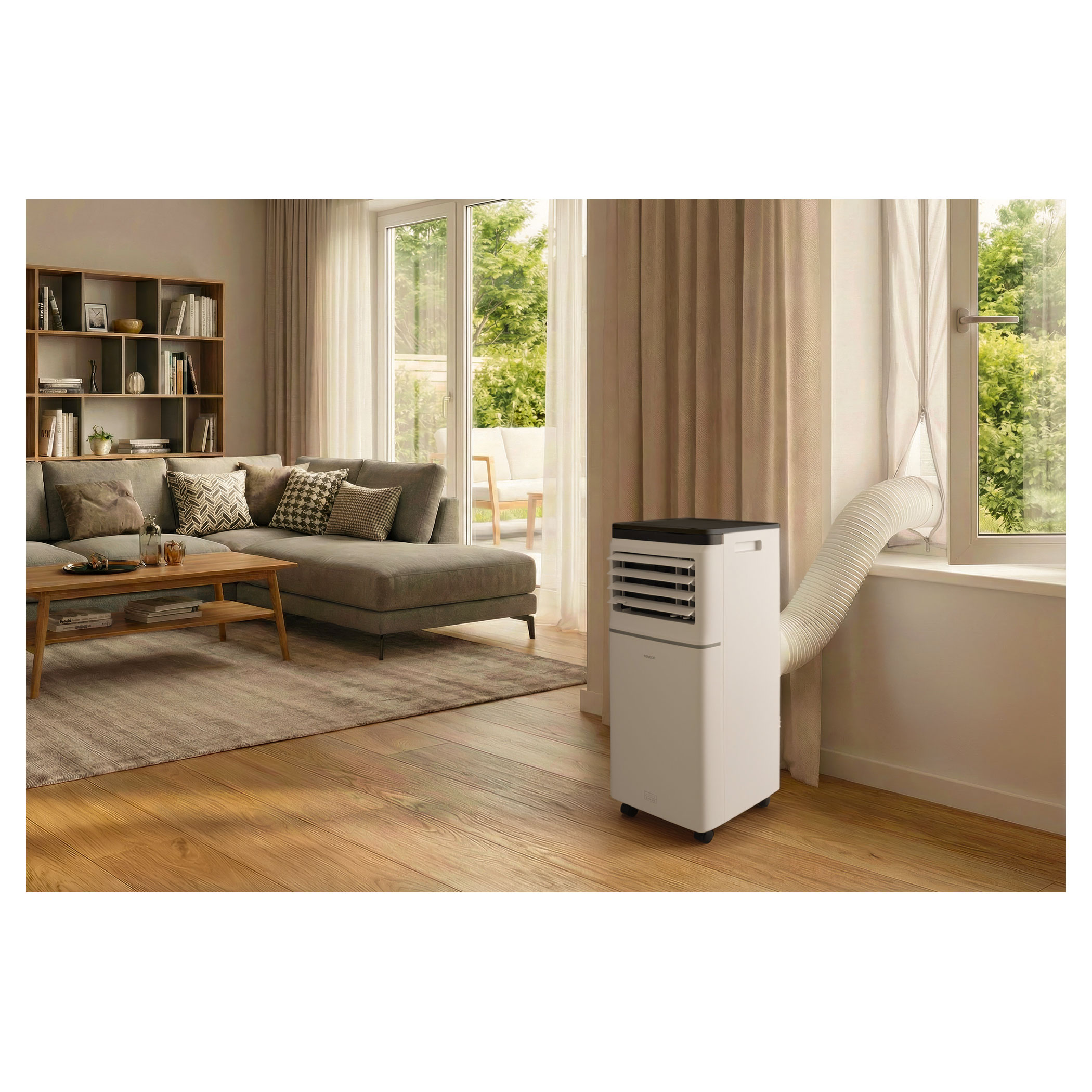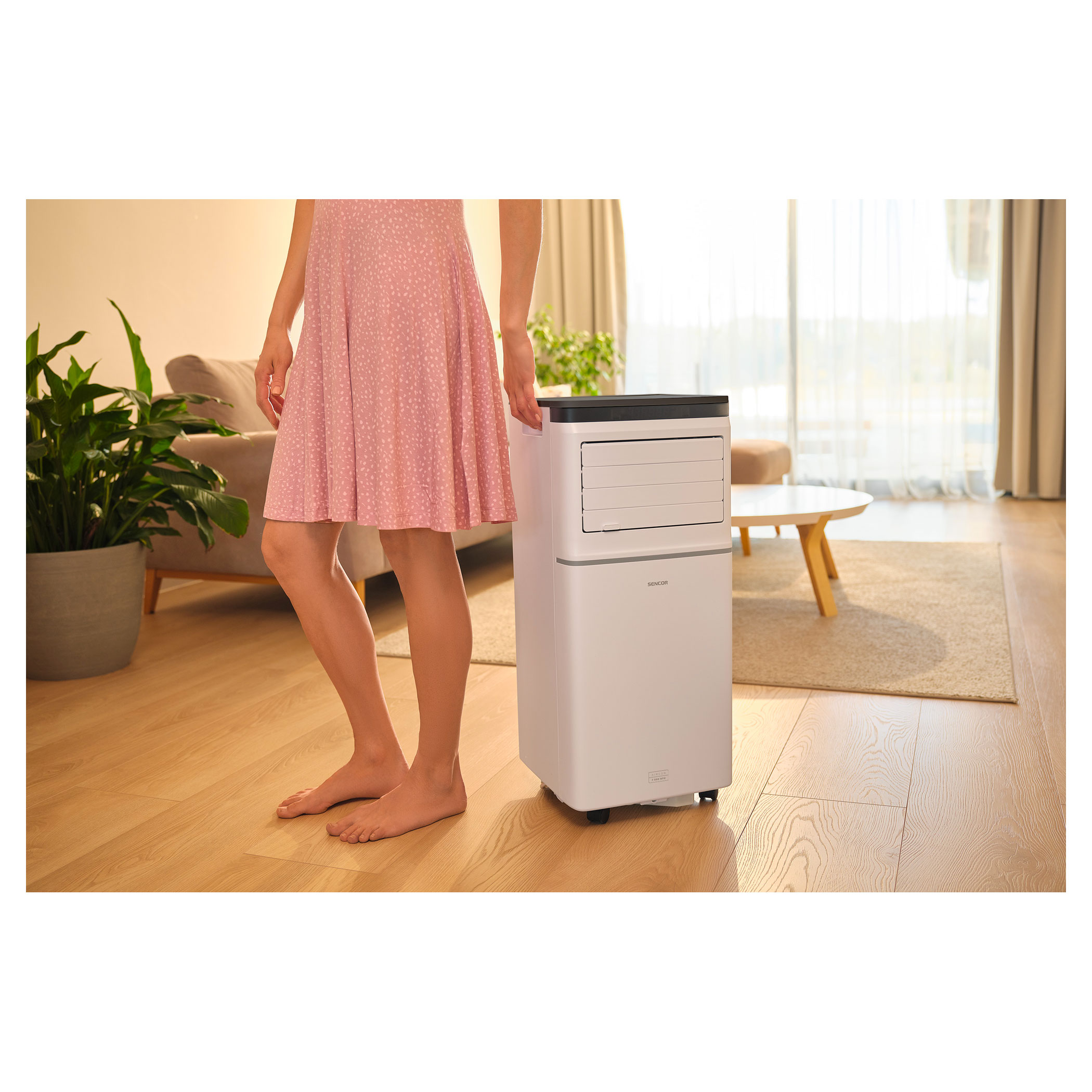 This air conditioner can be controlled in 3 ways. In addition to the standard remote or panel control method, there is the additional option to control the air conditioner from practically anywhere using your smartphone via the Sencor HOME application. Wherever there is internet access via your phone, you can connect to your home network and can therefore control your Sencor Wi-Fi air conditioner. So you can come to a pleasantly cool home after work or an excursion.Do you want to cool your workspace during the day and your bedroom at night? Easy transport is made possible by its 4 wheels and an integrated handle.